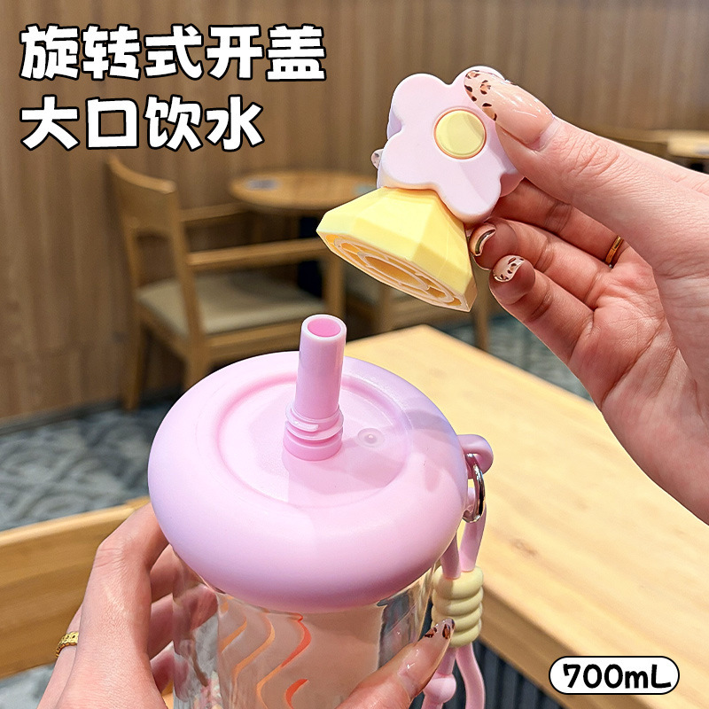 2026新款大容量塑料杯可爱卡通吸管水杯学生高颜值茶水分离随手杯