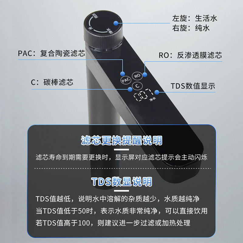 净水器通用配件2分黑色单水双水龙头家用厨房智能TDS数显纯水龙头