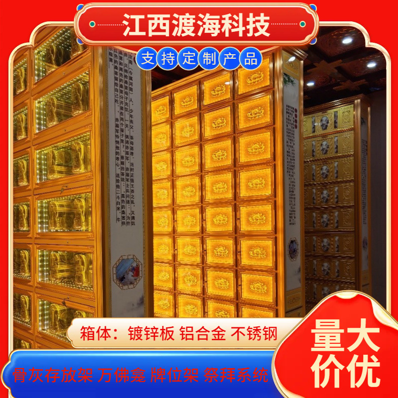 主营产品:骨灰存放架,骨灰盒寄存架,福寿架,万佛龛,牌位架,殡仪馆祭拜系统,寺院智能化管理系统、龙骨吊顶、智能骨灰寄存架