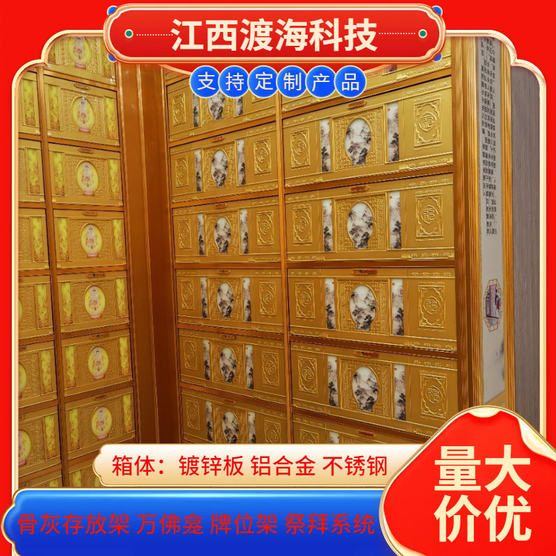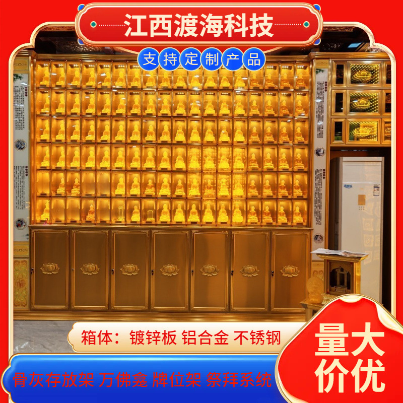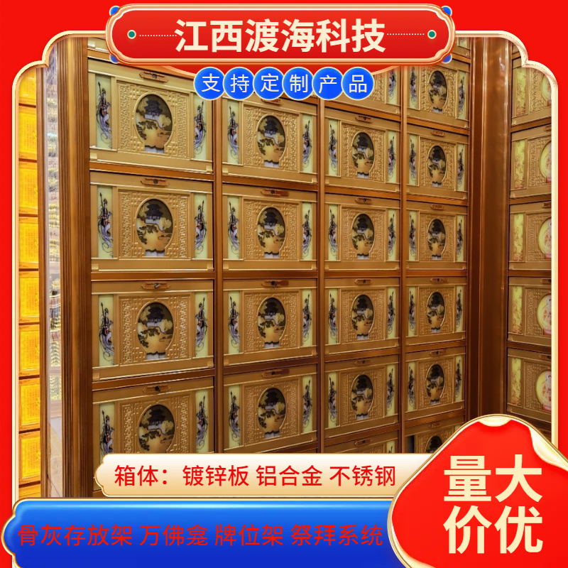 主营产品:骨灰存放架,骨灰盒寄存架,福寿架,万佛龛,牌位架,殡仪馆祭拜系统,寺院智能化管理系统、龙骨吊顶、智能骨灰寄存架
