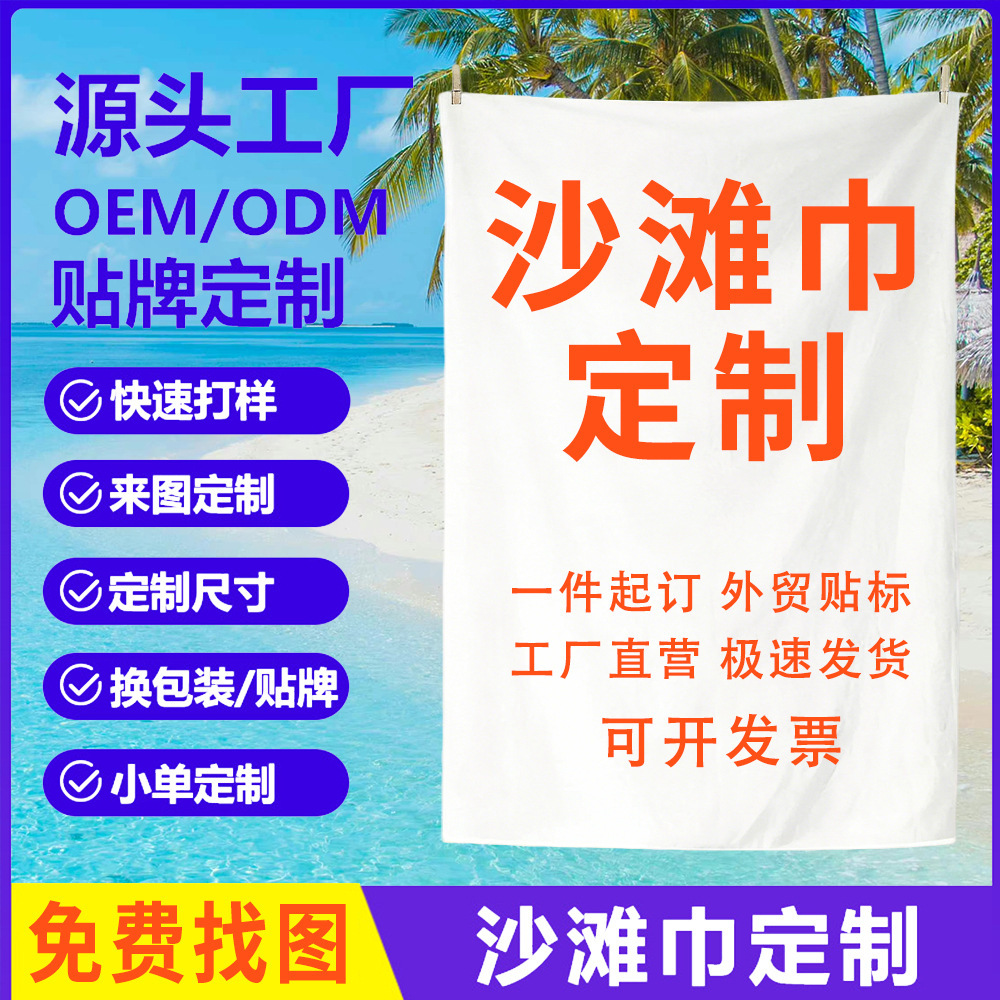 外贸跨境超细纤维沙滩巾定制数码印花LOGO速干a类浴巾加毛巾批发