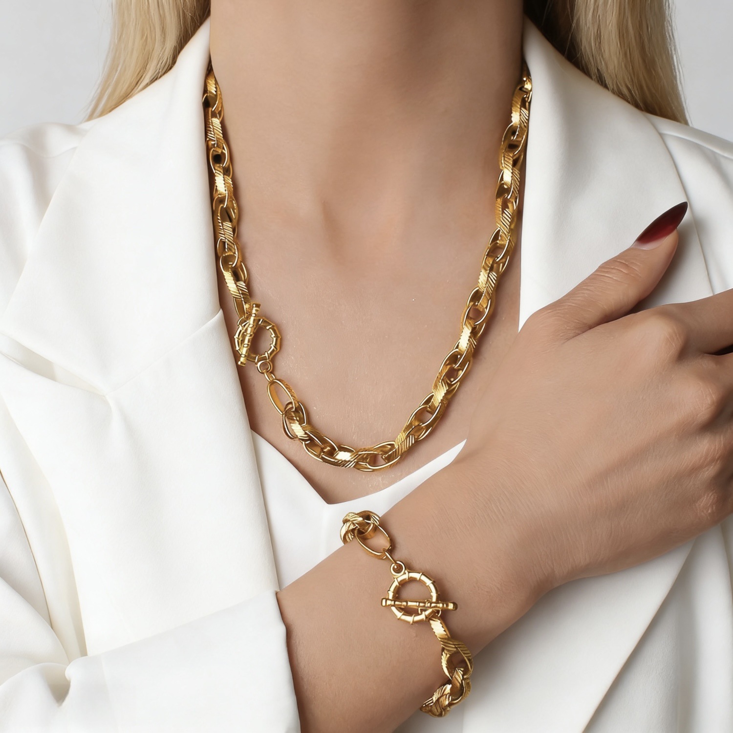 | 项链手链定制 | 不锈钢粗链手链项链女欧美简约圆形扣双色百搭钛钢手饰 | 风格分类 | 个性风潮 |