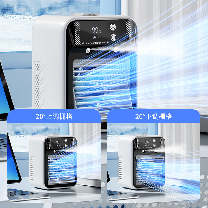 新USB喷雾加湿小空调扇桌面水冷风扇宿舍制冷电风扇冷风机可充电