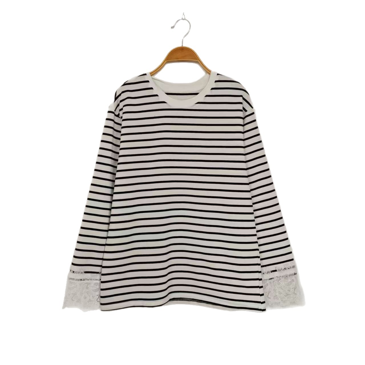 2026新款条纹蕾丝边长袖