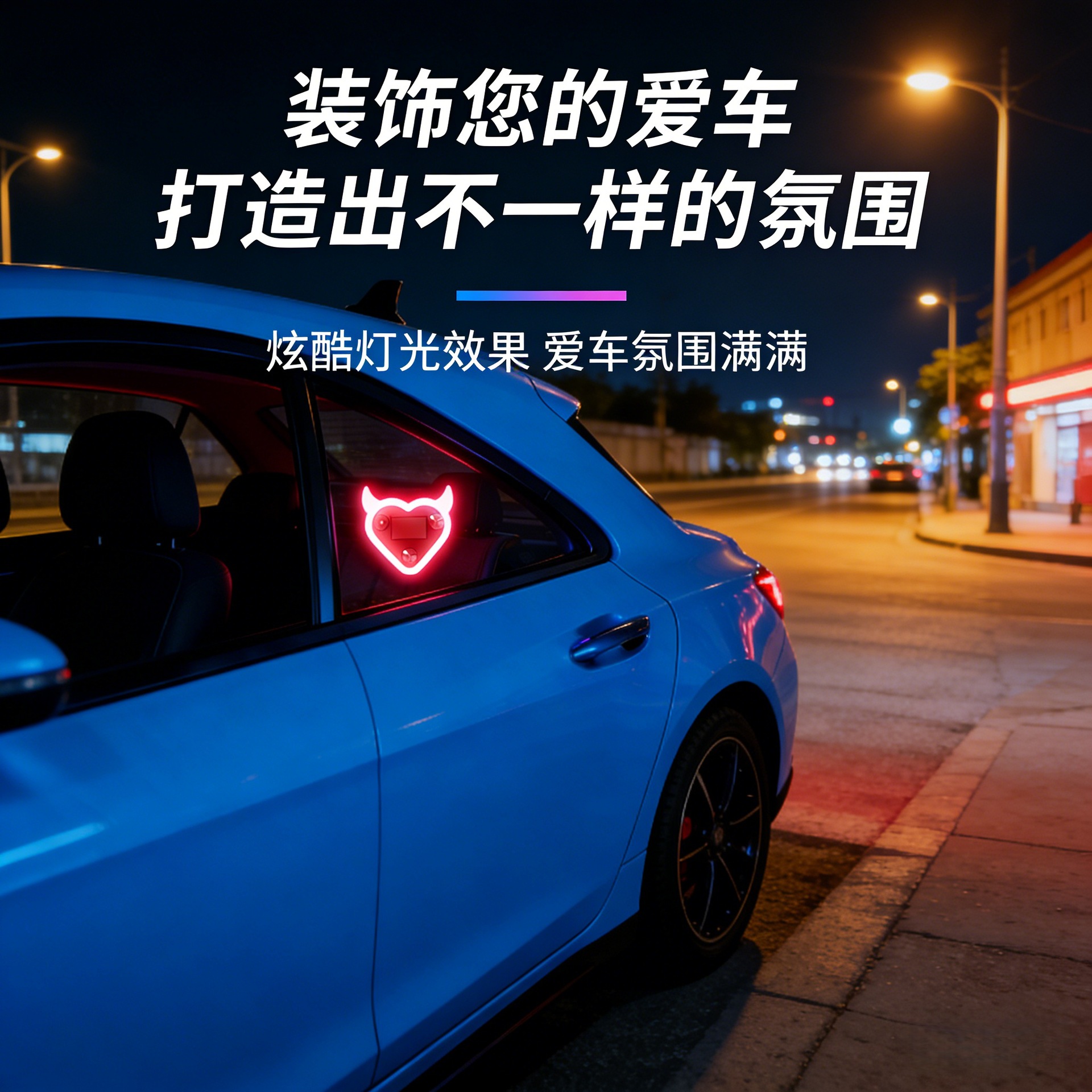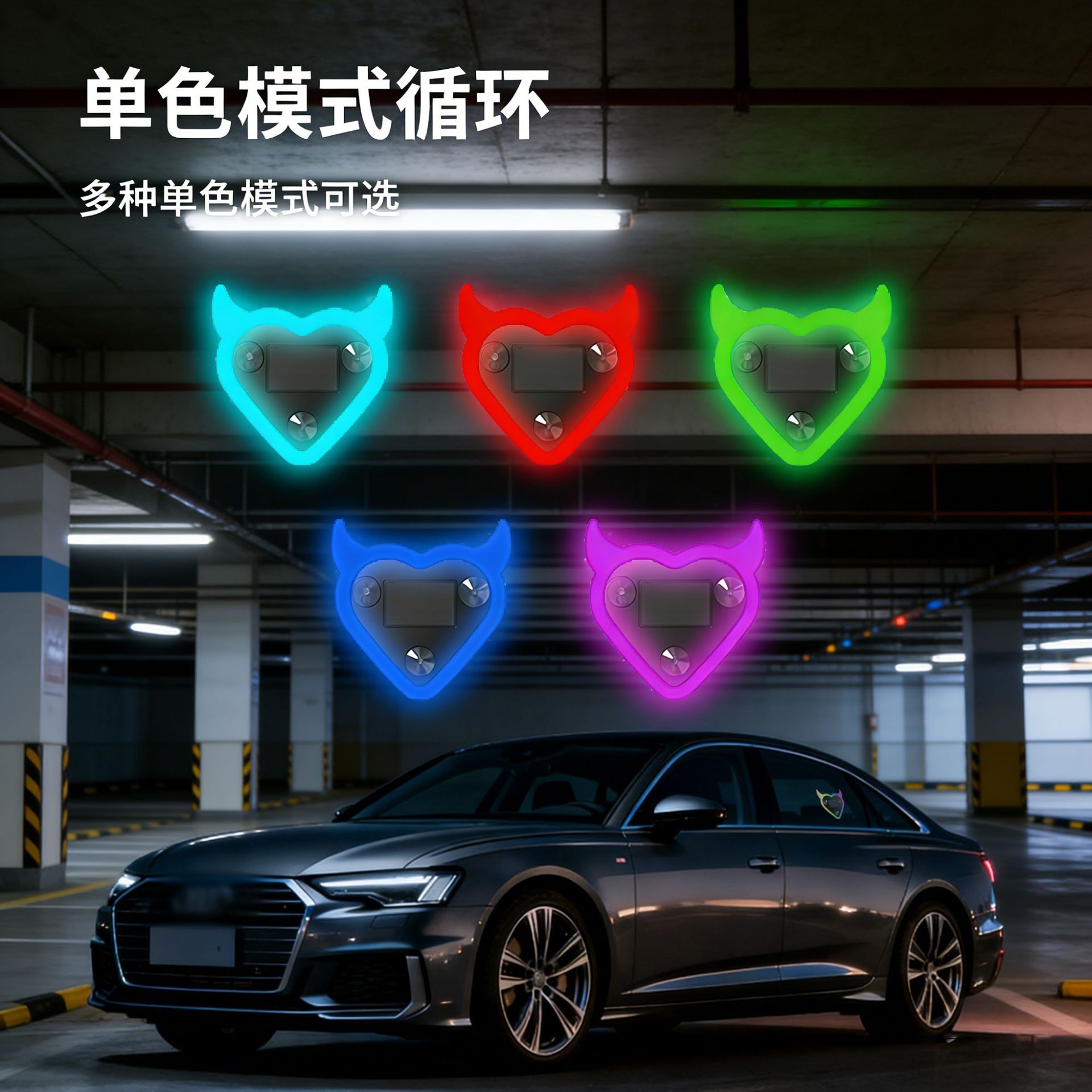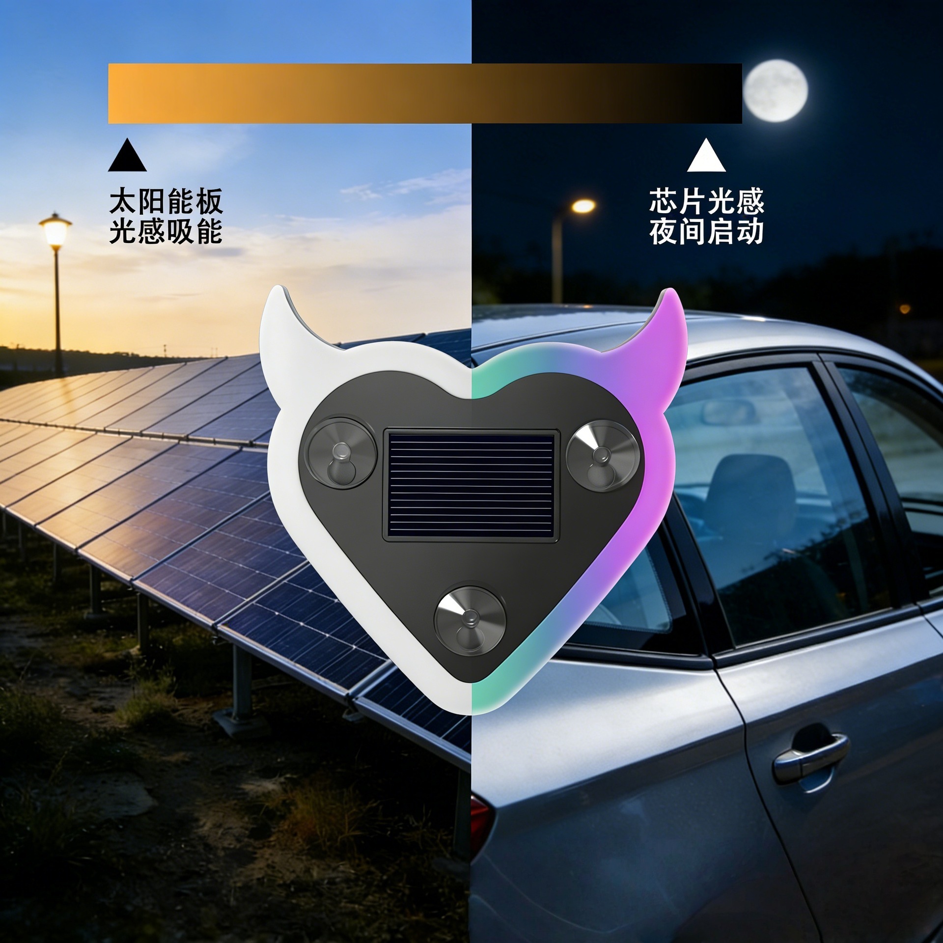 太阳能爱心车窗氛围灯 心形恶魔角LED装饰灯 跨境爆款车载改装配