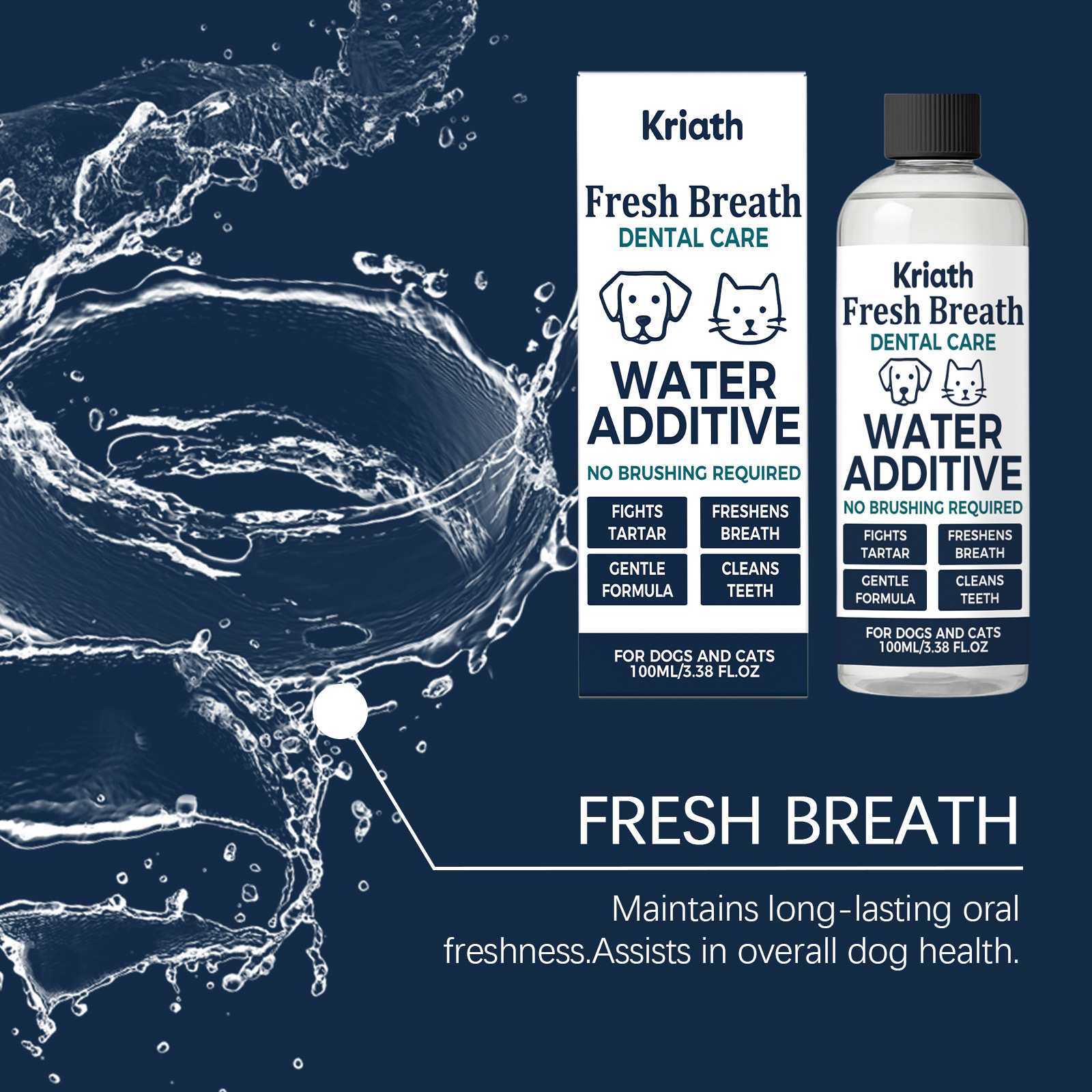 Kriath 宠物可饮用漱口水 猫狗通用植萃配方温和护龈清洁口腔牙渍