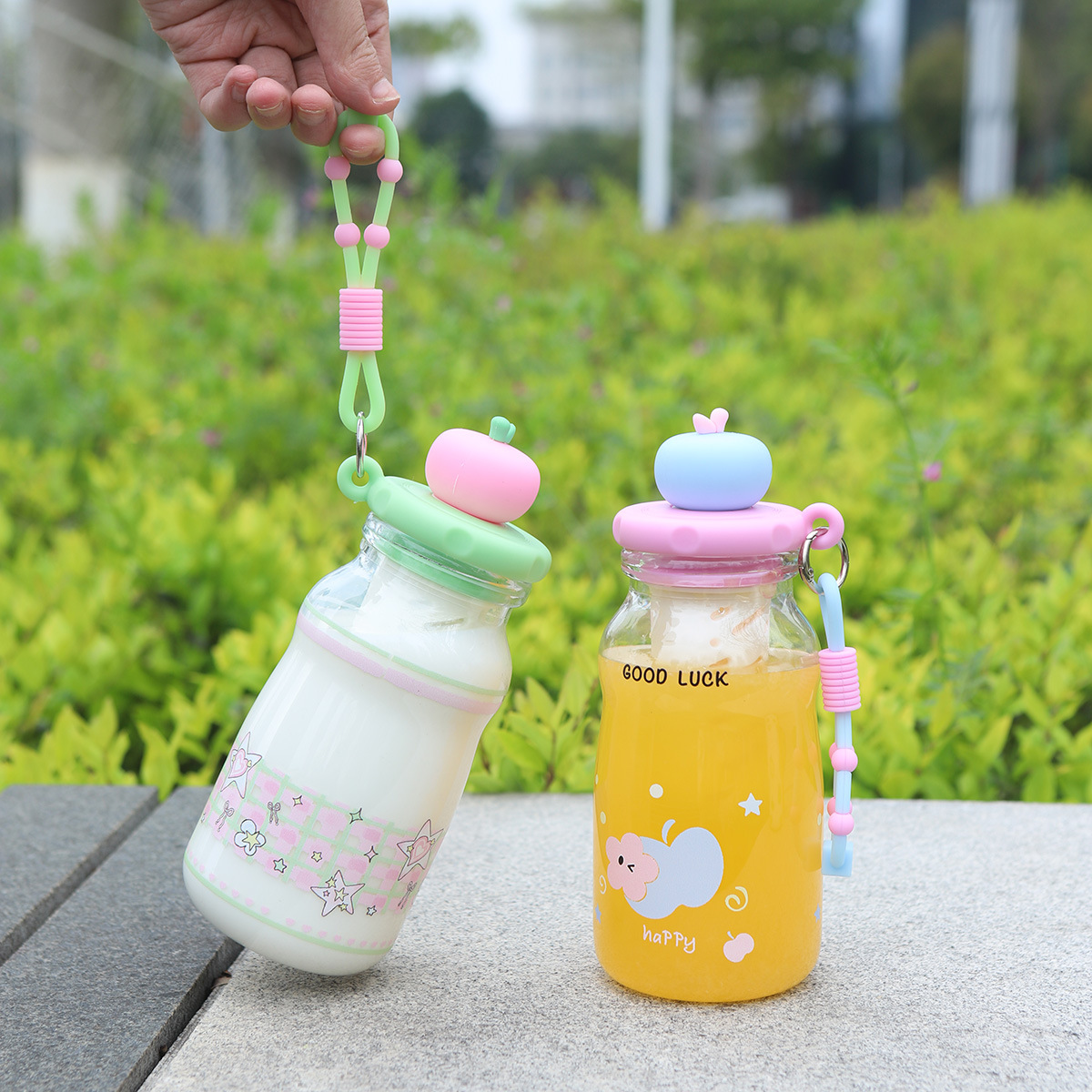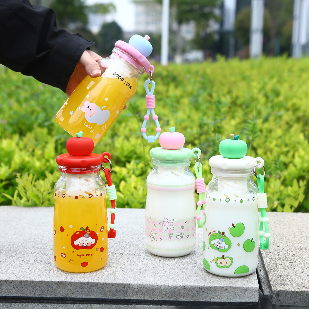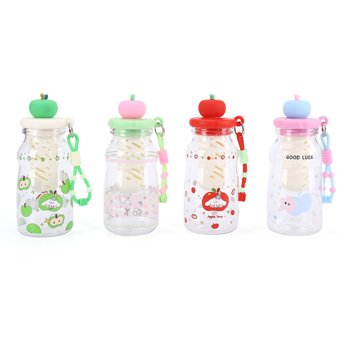 高颜值新款PC可爱苹果塑料杯卡通吸管杯夏季便携提绳塑料水杯杯子