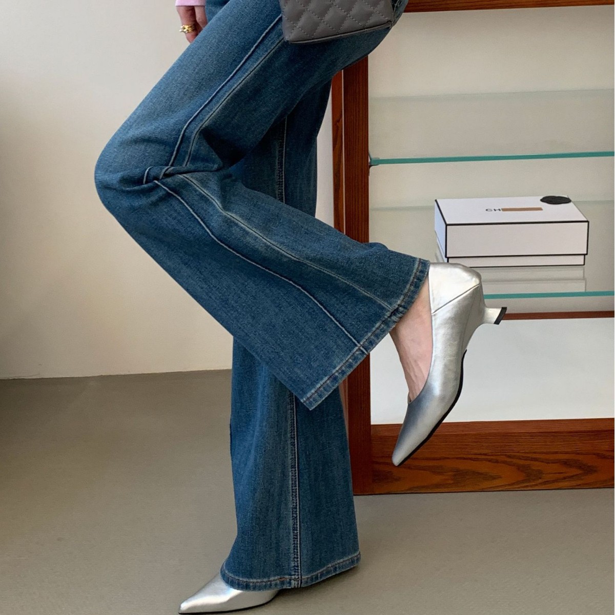 法式尖头皮质女单鞋2026春季细跟低跟简约百搭性感气质时尚女单鞋