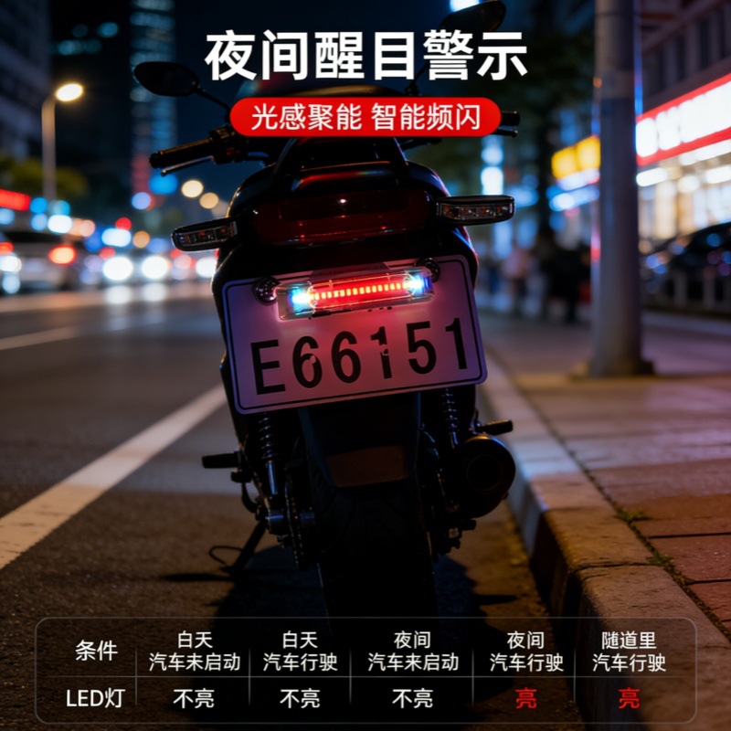 太阳能防追尾警示灯摩托车汽车通用免接线LED爆闪灯夜间智能感应