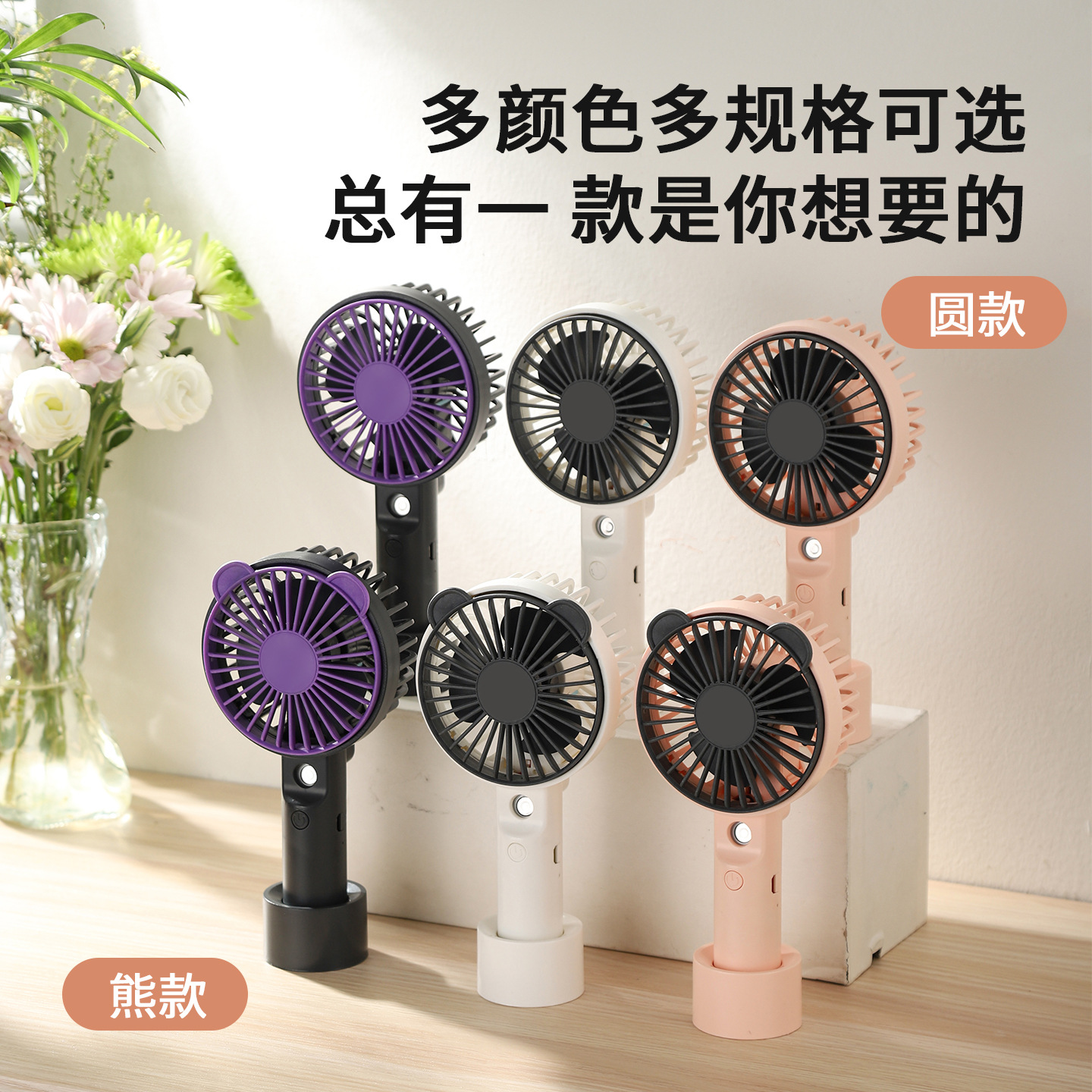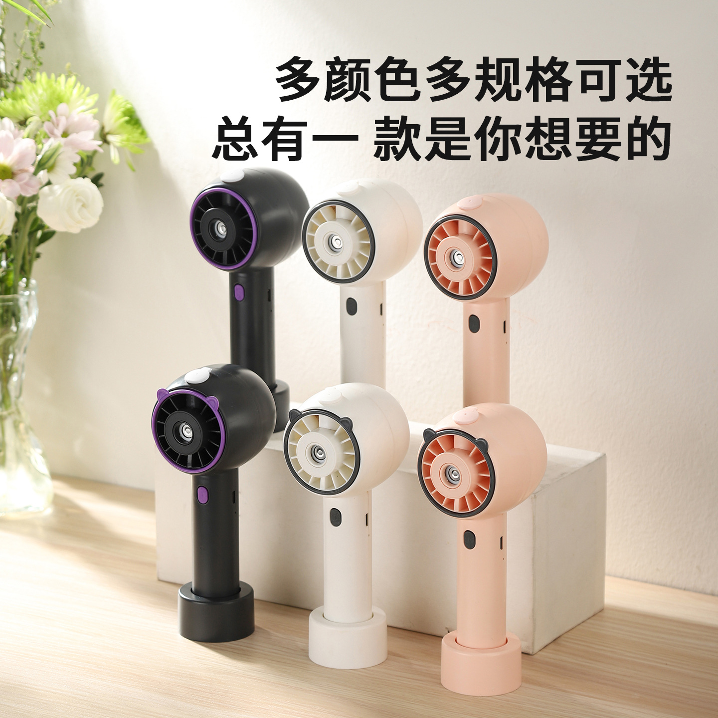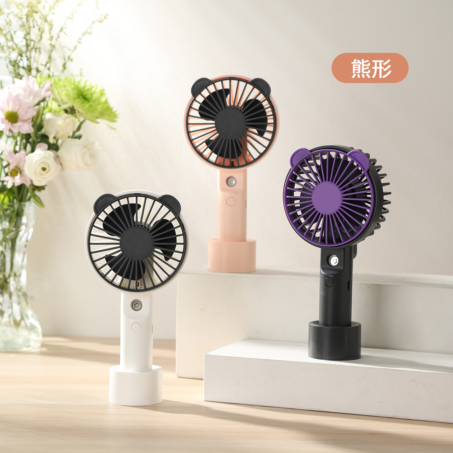 26跨境新款手持熊头喷雾小风扇便携式USB充电三档调速风扇批发直