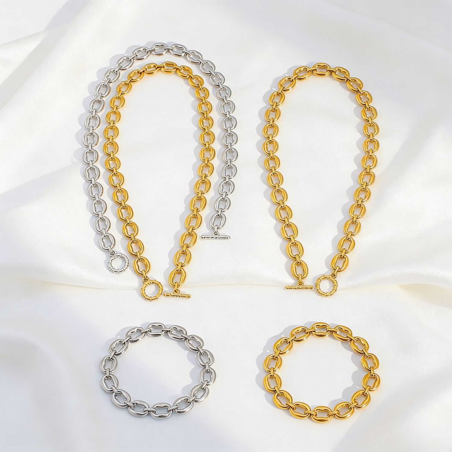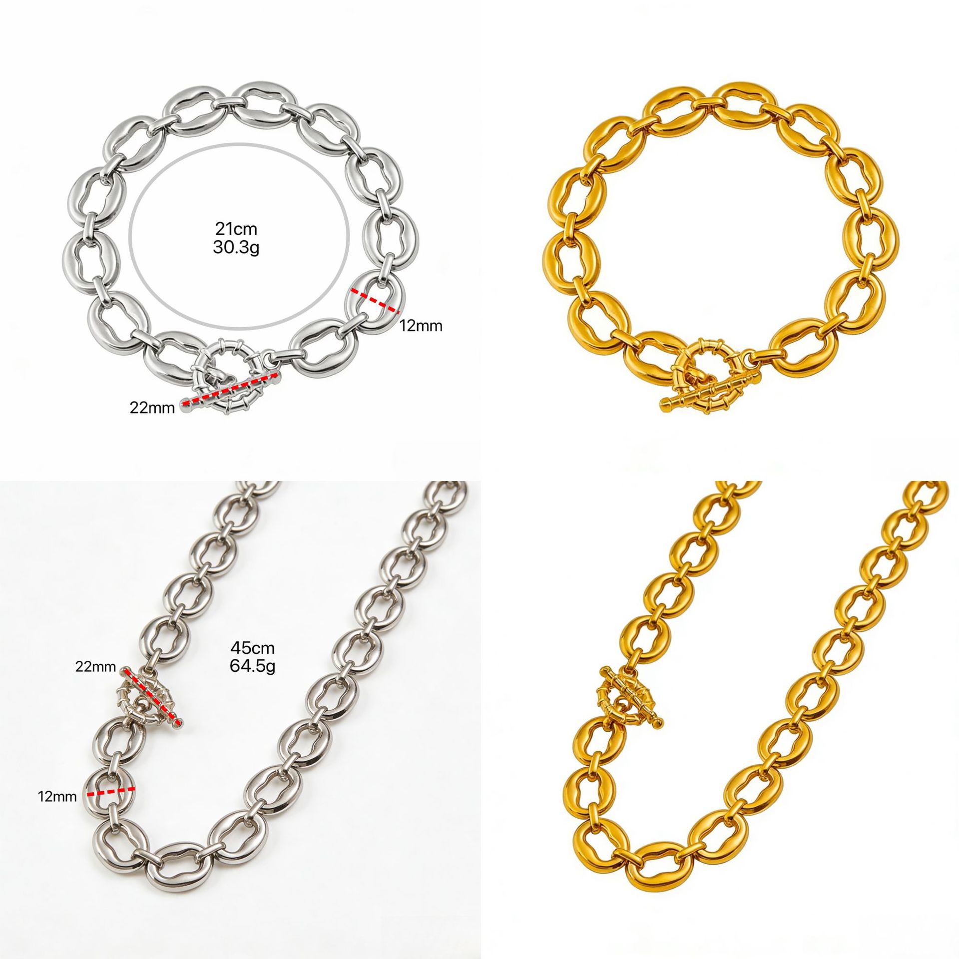 项链手链套装跨境几何圆环粗链项链手链套装不锈钢金属链欧美气质首饰品女