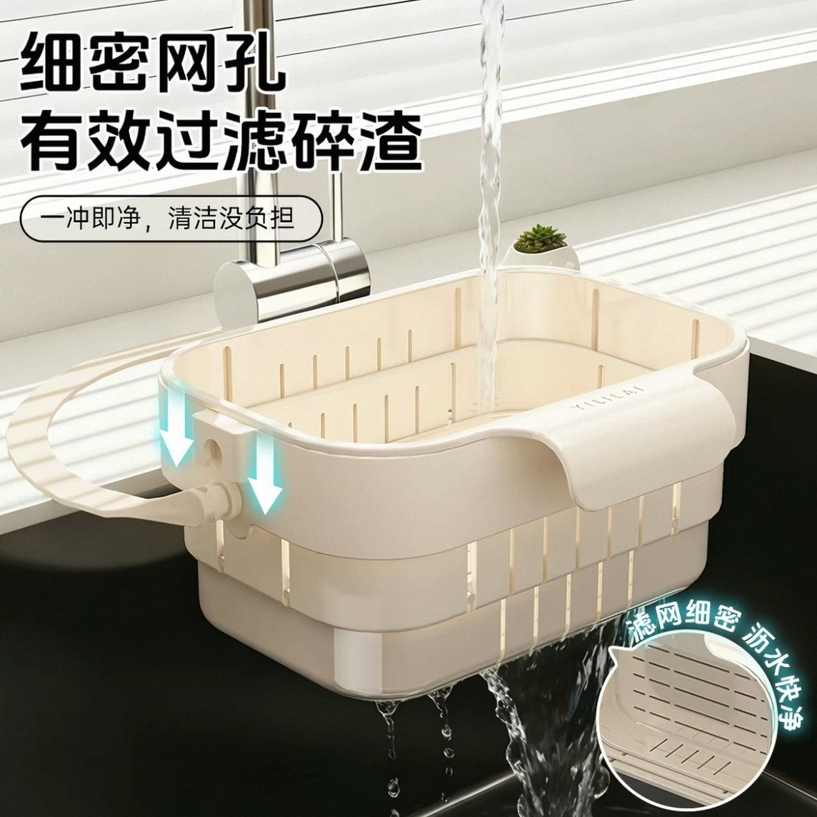 家用可挂式水槽沥水篮折叠可伸缩厨房水槽分离食物水果残渣过滤篮