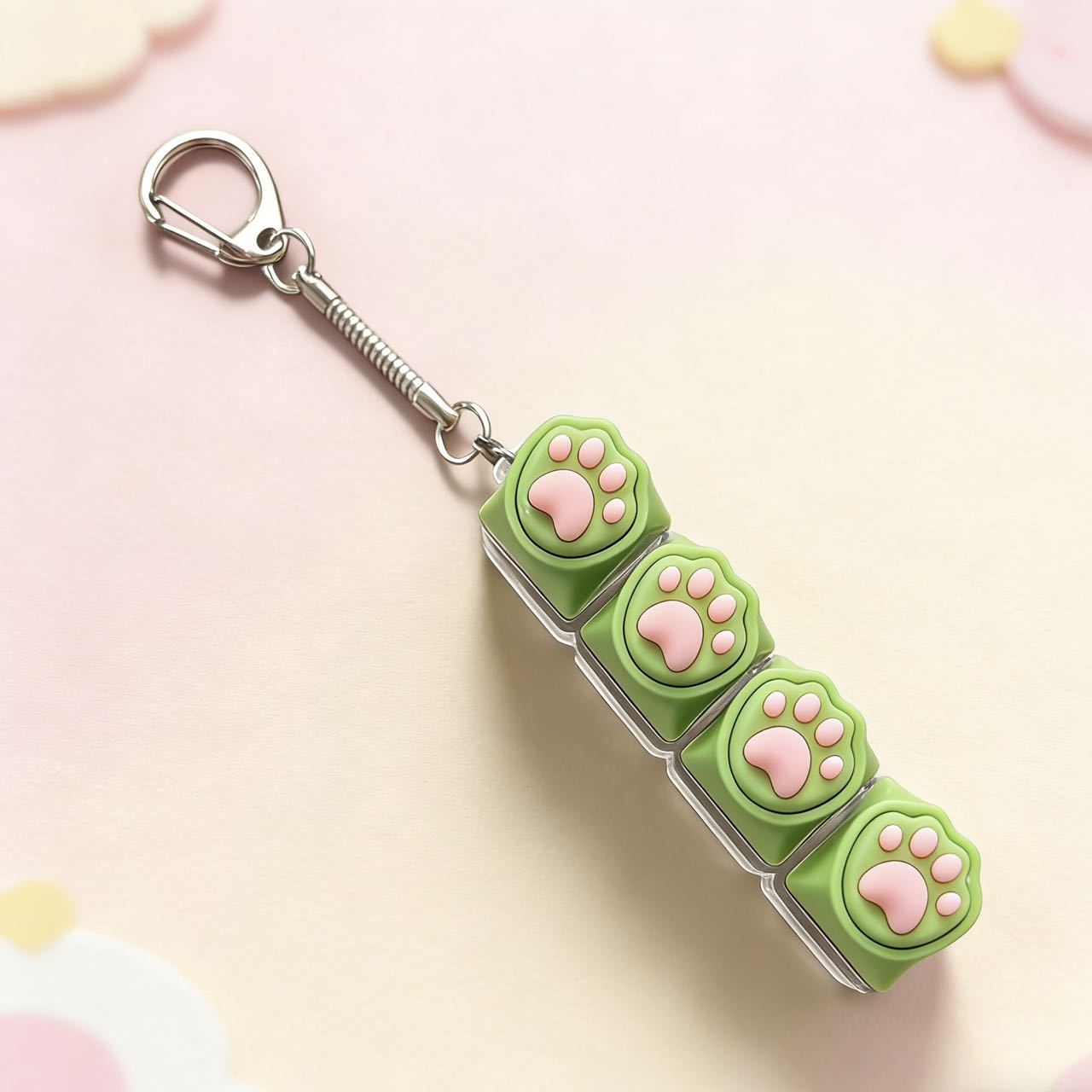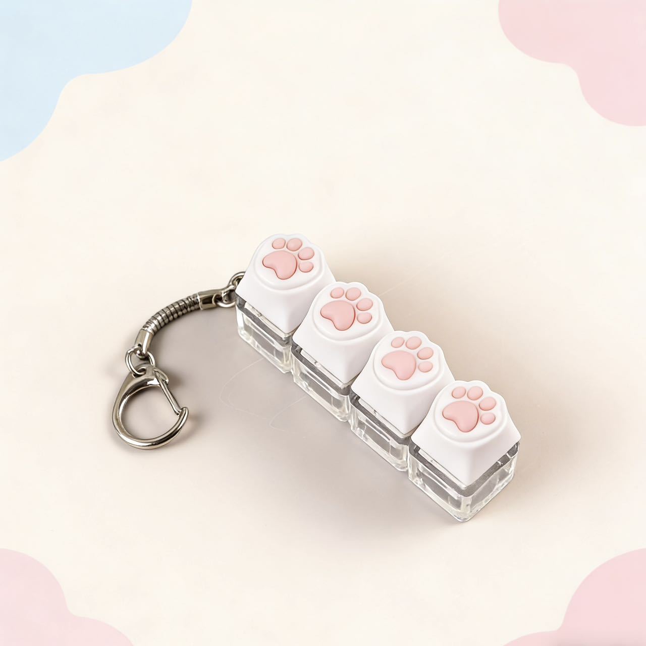 彩色4键解压猫爪按键卡通图案试轴器键盘按键钥匙扣玩具批发