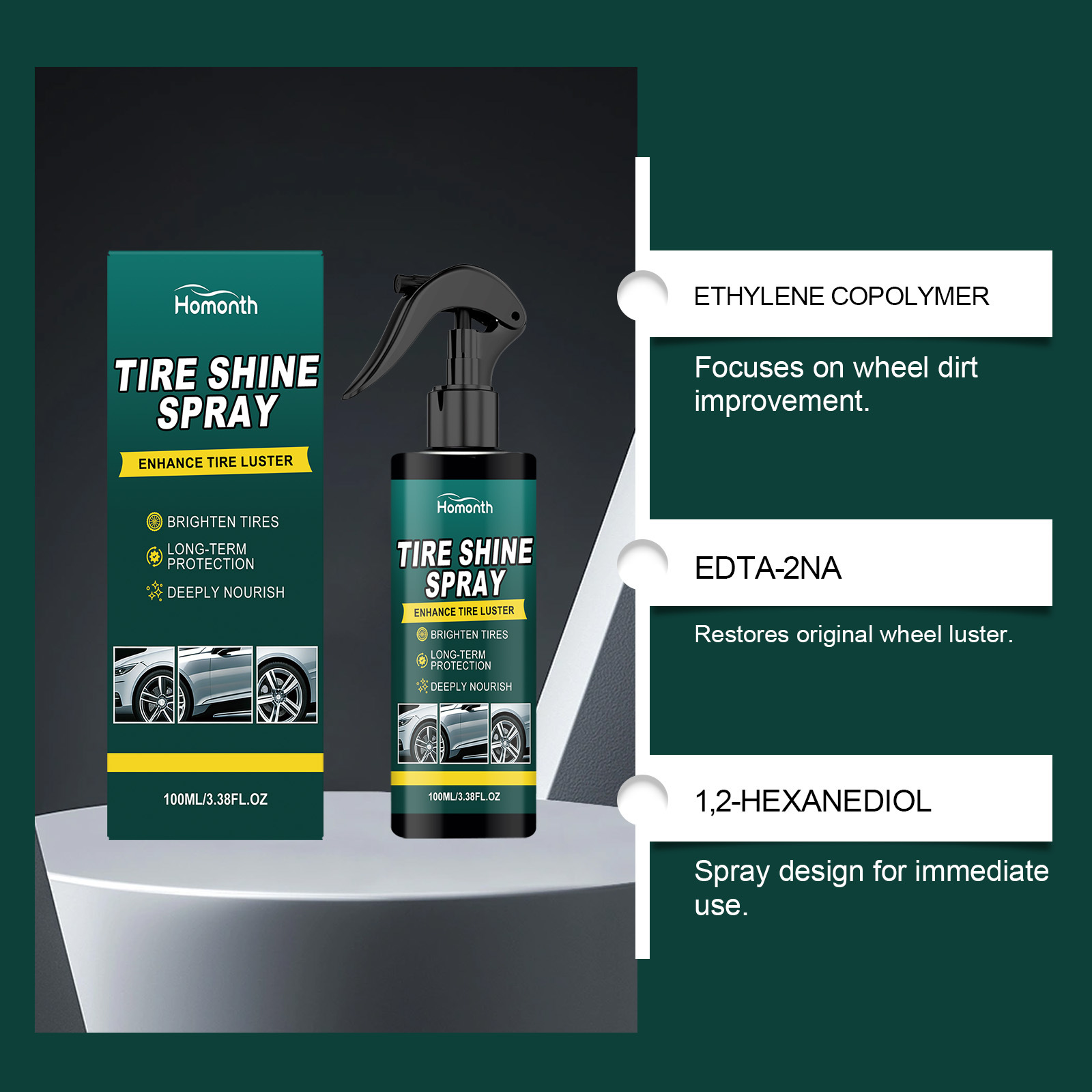 HOMONTH 轮胎光亮剂 日常清洁汽车轮胎便携式光亮轮胎护理剂