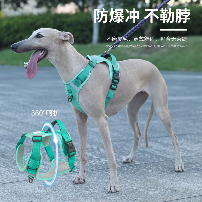| 颜色 | 浅蓝色胸背+1.5米蓝色反光圆绳 | 颜色 | 浅绿胸背+1.5米蓝色反光圆绳 |