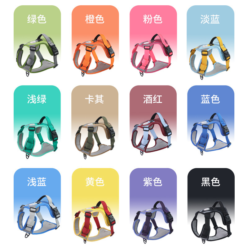 | 颜色 | 紫色胸背+1.5米黑色反光圆绳 | 颜色 | 粉色胸背+1.5米黑色反光圆绳 |
