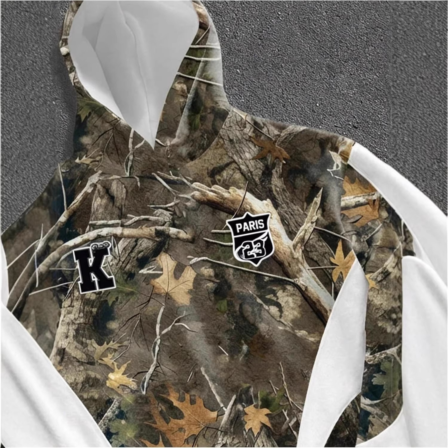 户外迷彩树枝3D时尚百搭连帽衫美式街头跨境宽松潮牌印花休闲卫衣
