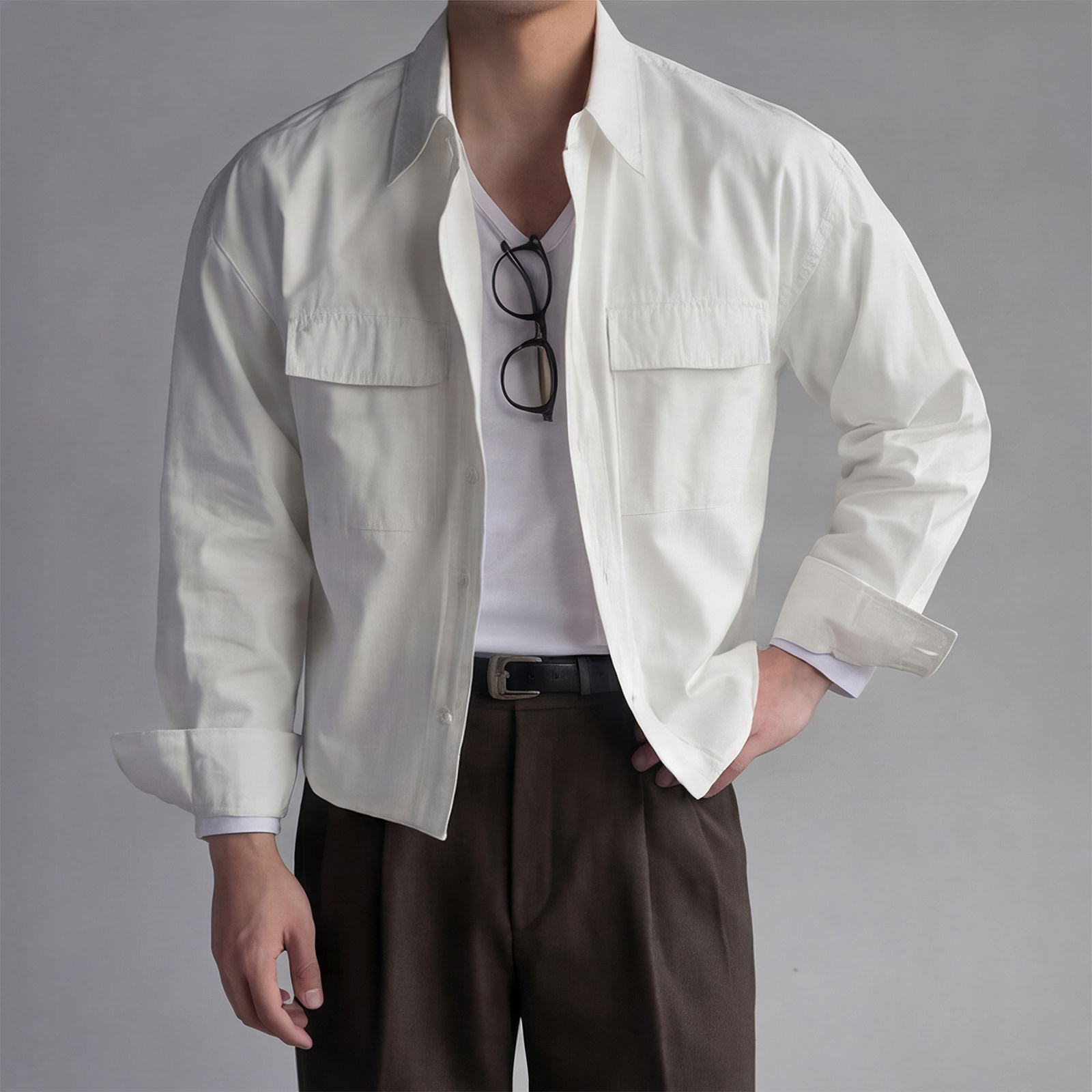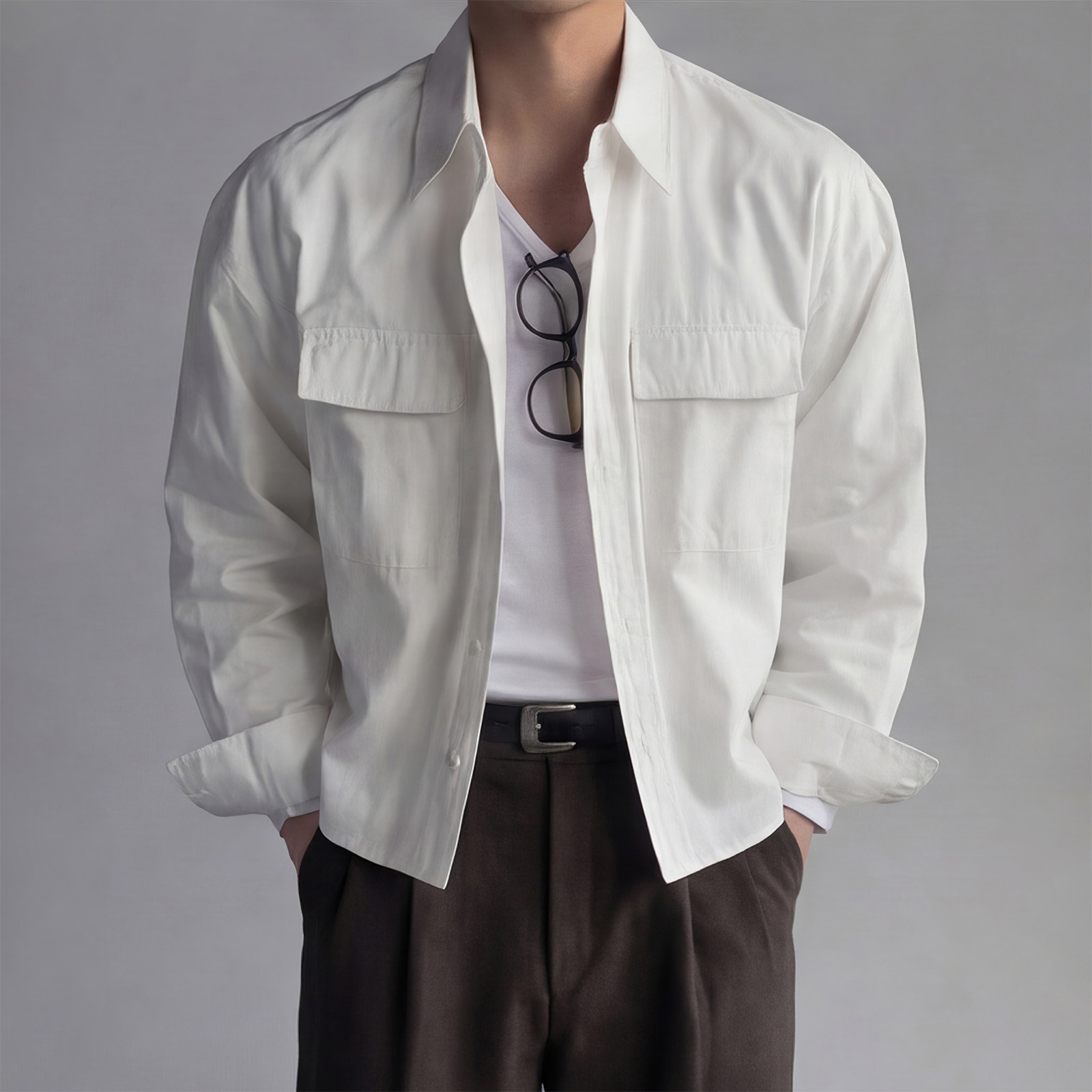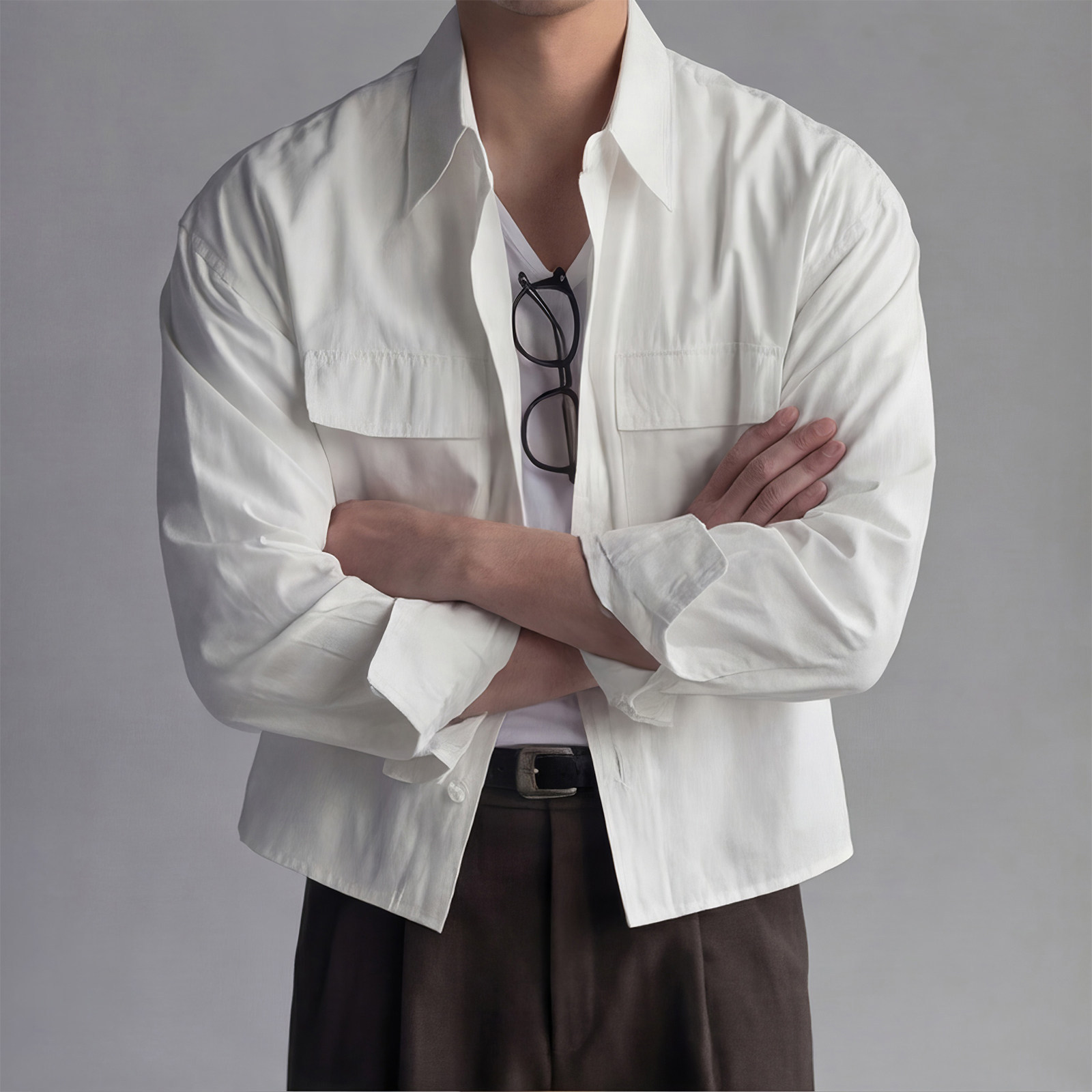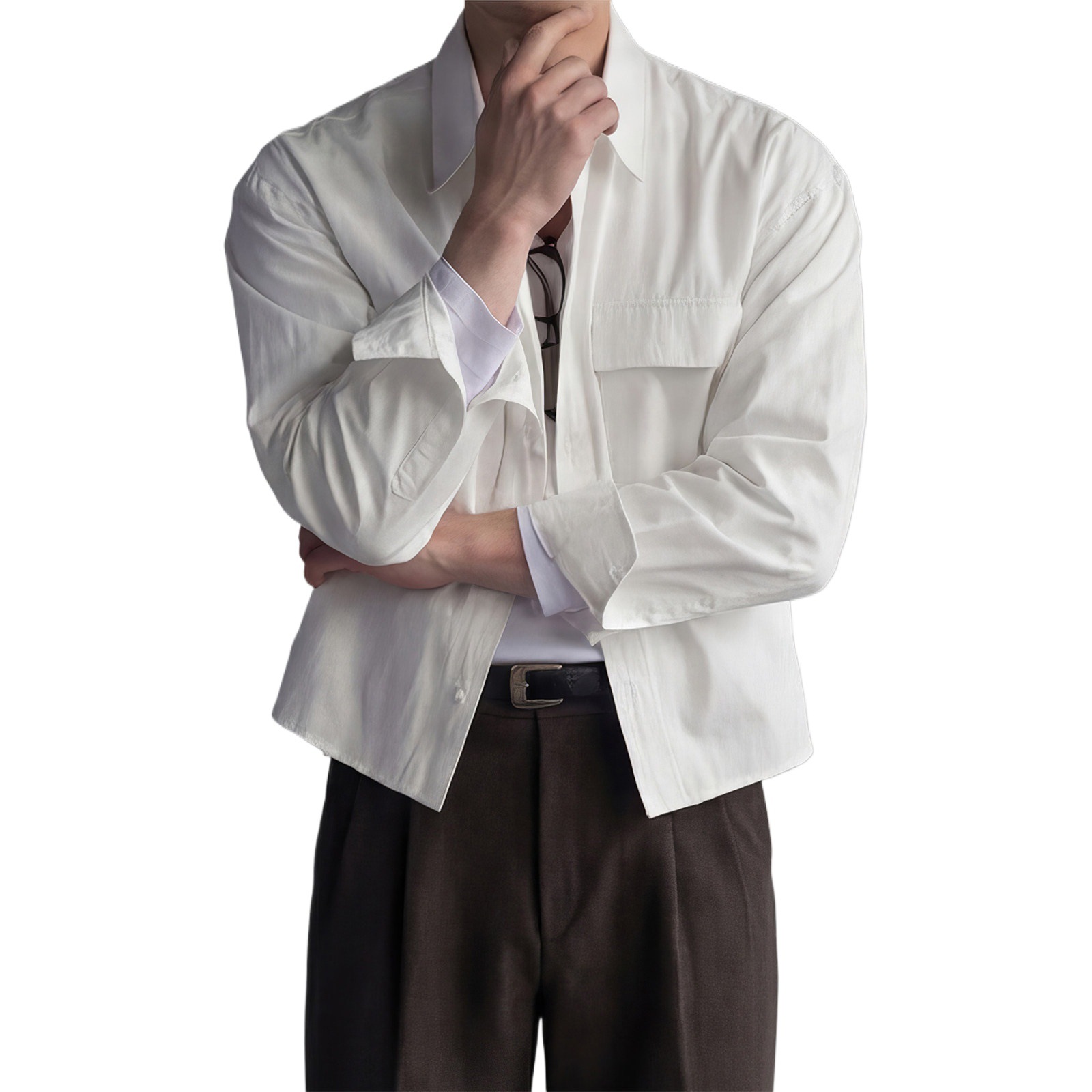 白色短款大口袋工装衬衫男春秋季美式cleanfit高智感衬衣外套衬衫