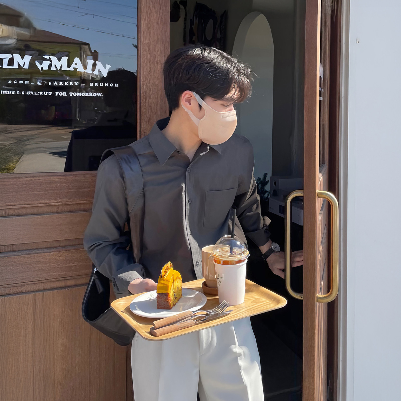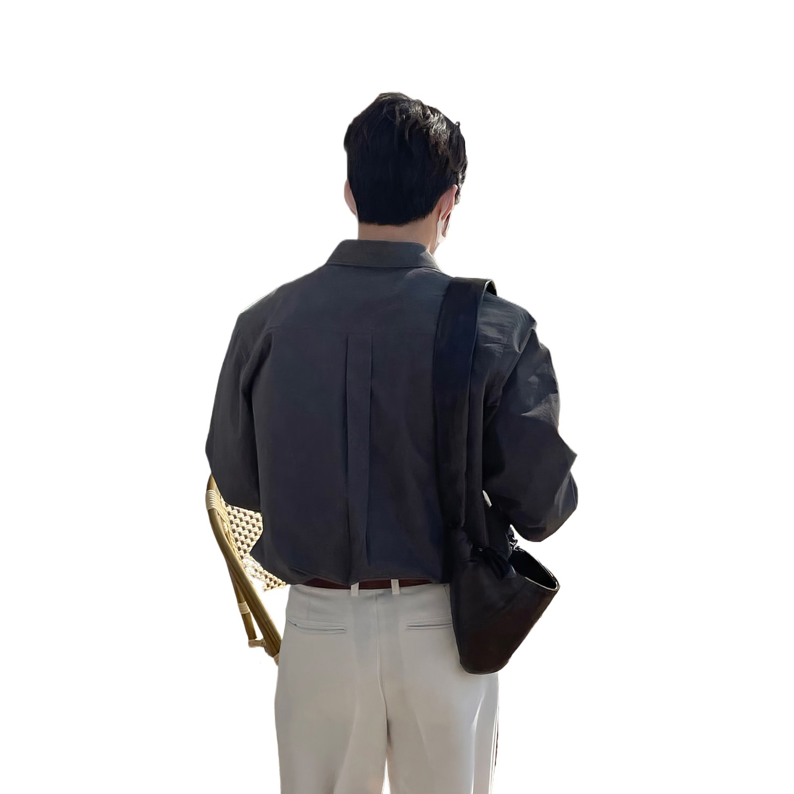 浅卡其色长袖衬衫男款春秋韩系高级感防晒翻领衬衣休闲通勤上衣潮