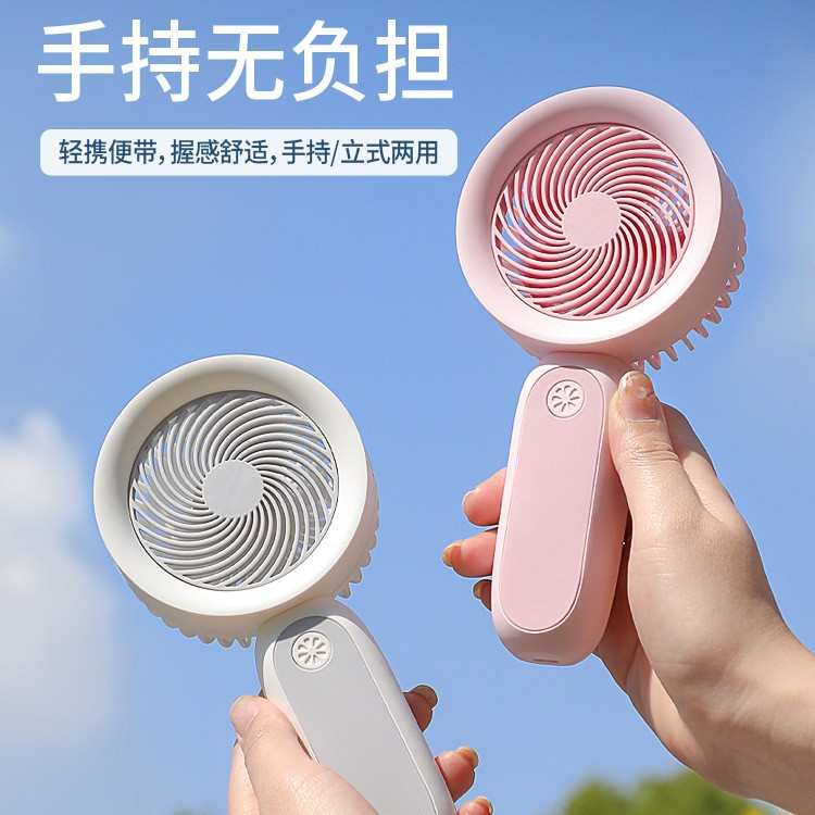 跨境桌面手持小风扇氛围感灯光迷你电风扇学生可充电便携USB风扇