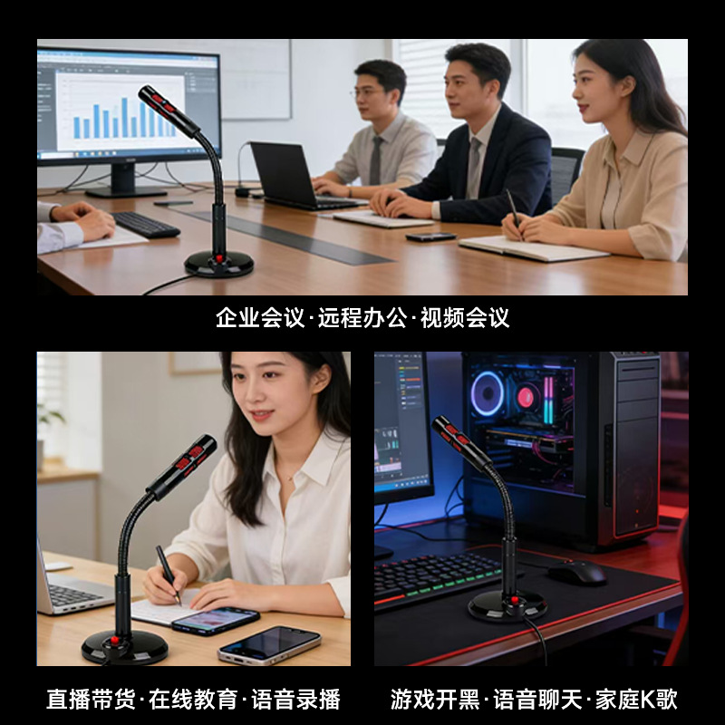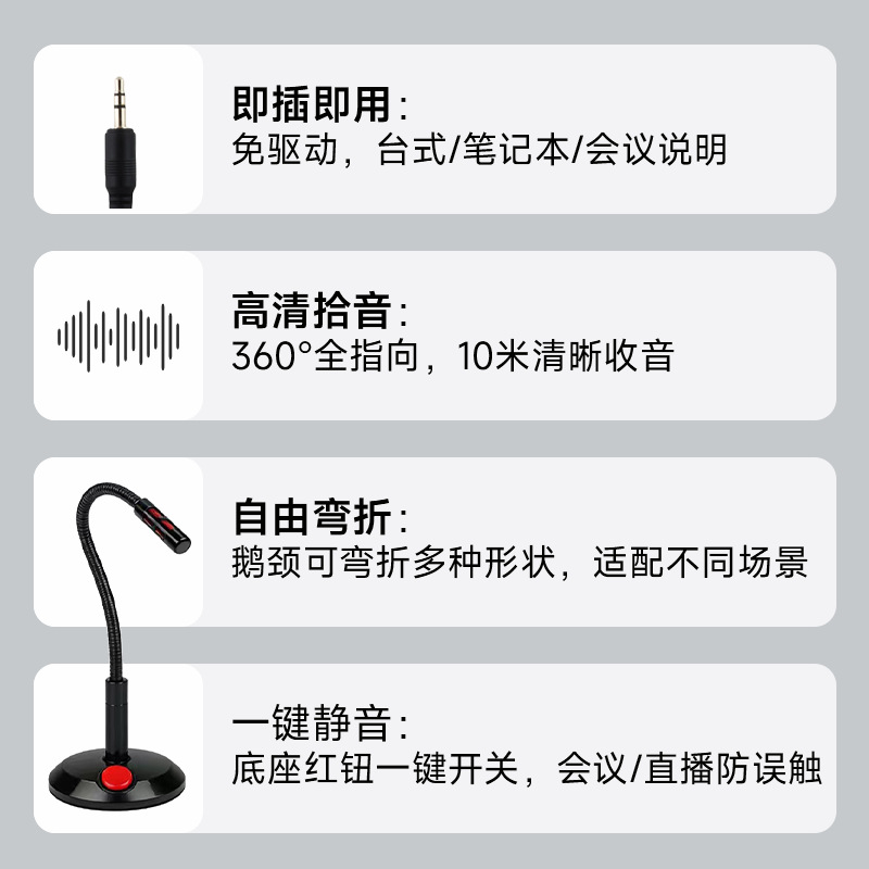 会议游戏直播研讨网课学习式炫彩麦克风3.5mm接口随意弯折不易断