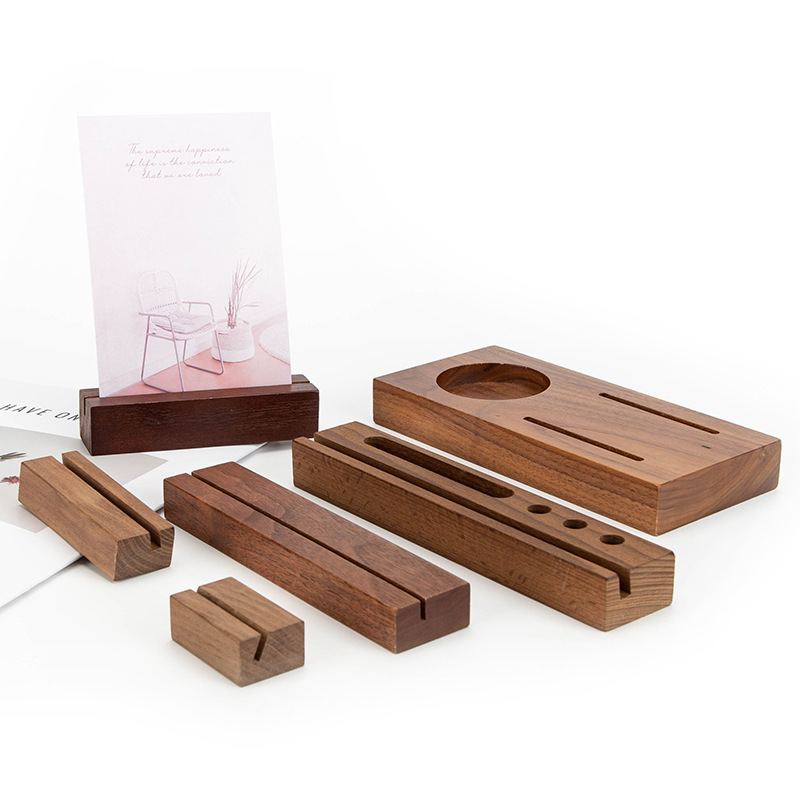 实木台历底座商务办公榉木底座创意时尚桌面收纳卡片便签架木底座
