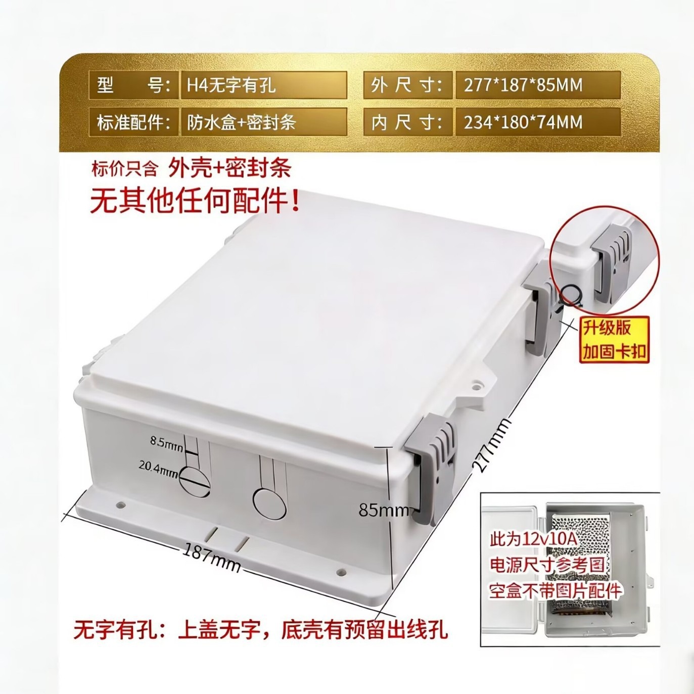 外形尺寸 | 277*187*85 | | 系列 | 防水系列 |