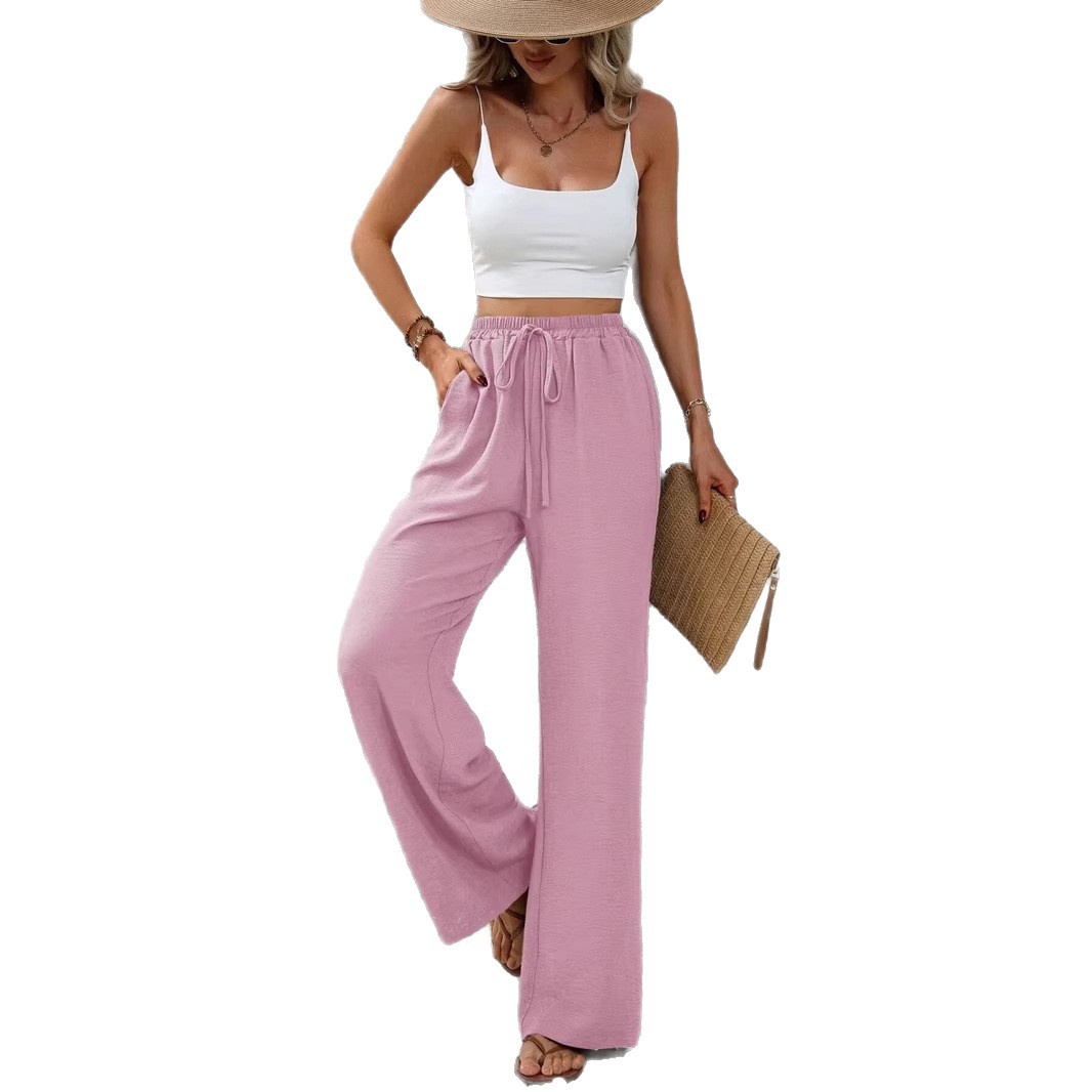 2026亚马逊Tiktok 欧美 女装百搭纯色拖地阔腿裤休闲裤微弹松紧腰