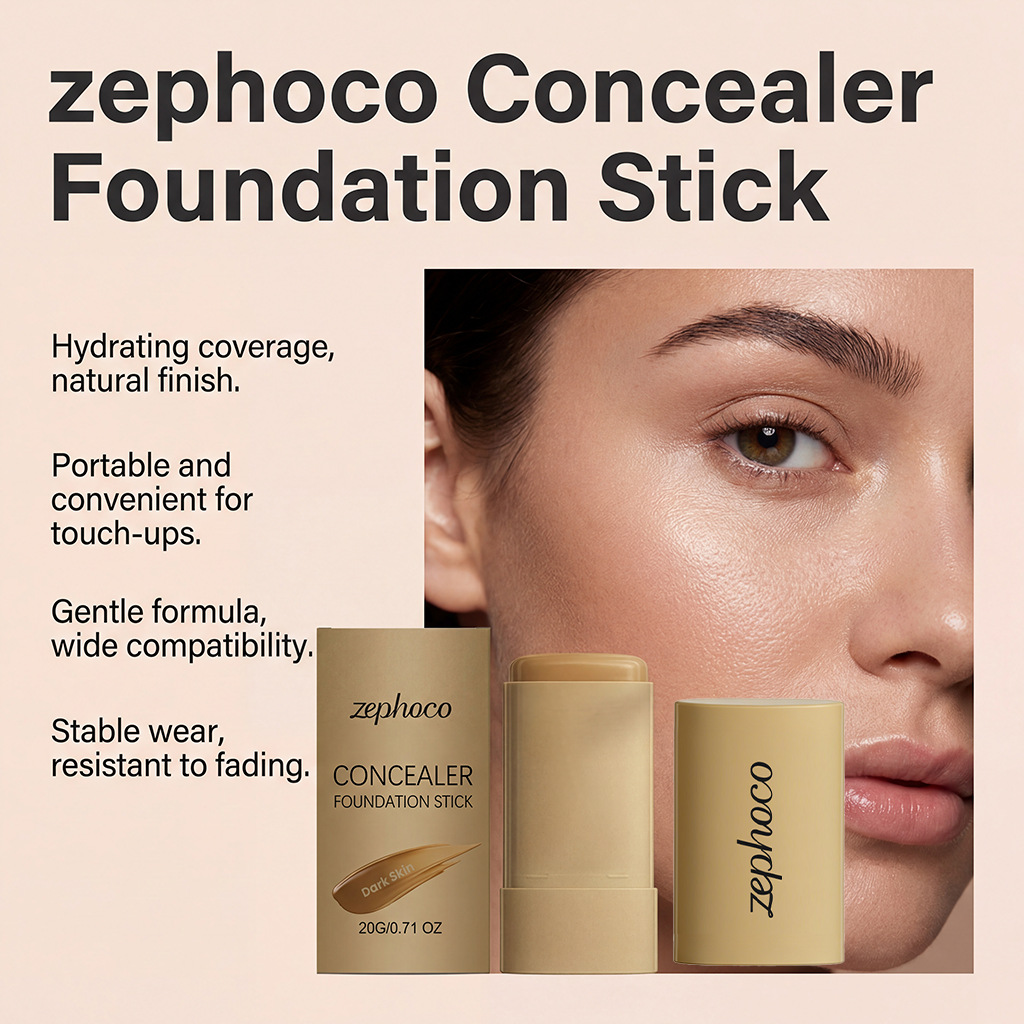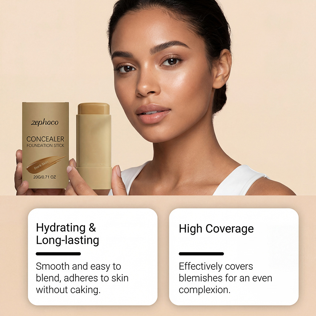 zephoco深肤色保湿遮瑕粉底棒 自然轻薄均匀肤色轻盈贴肤清透妆感