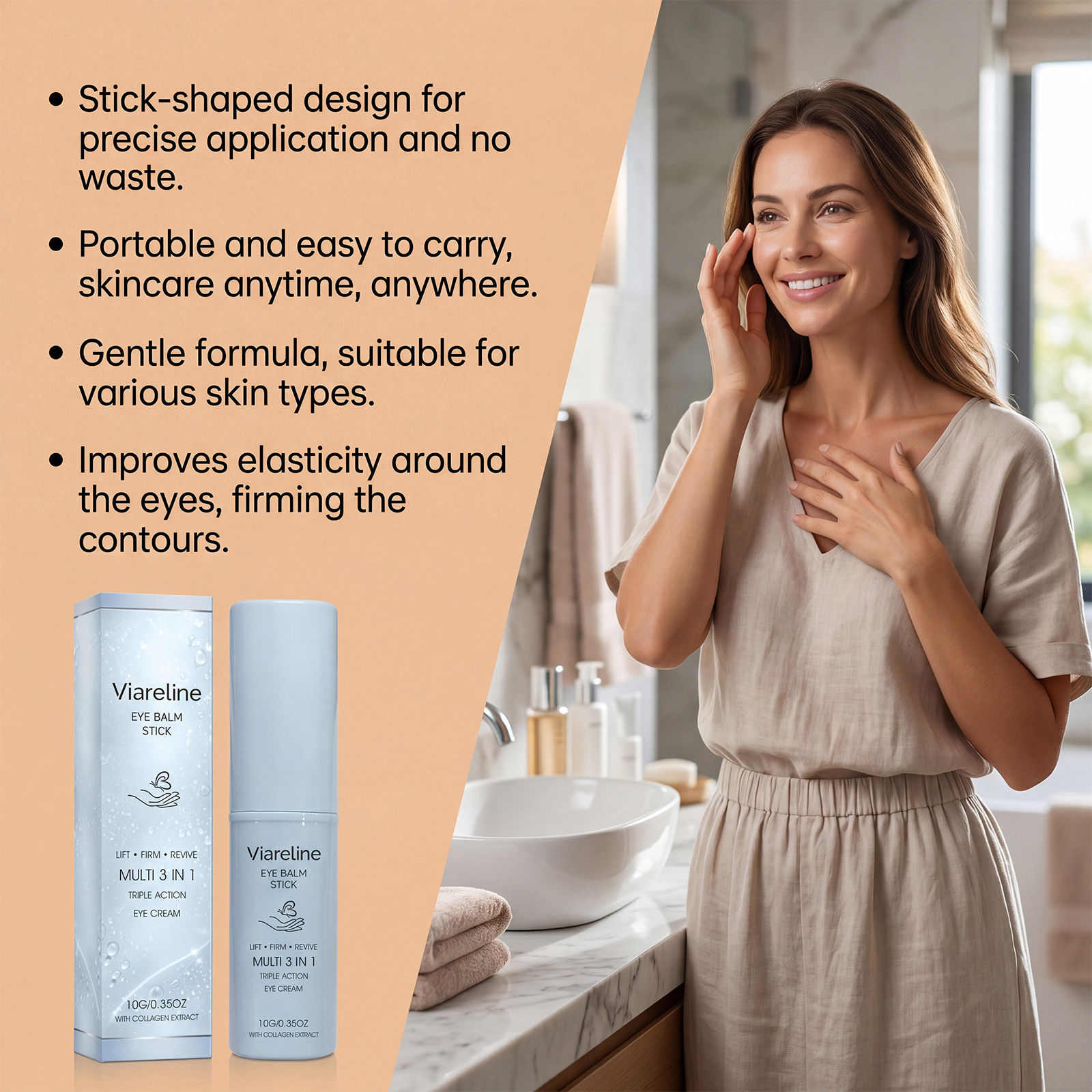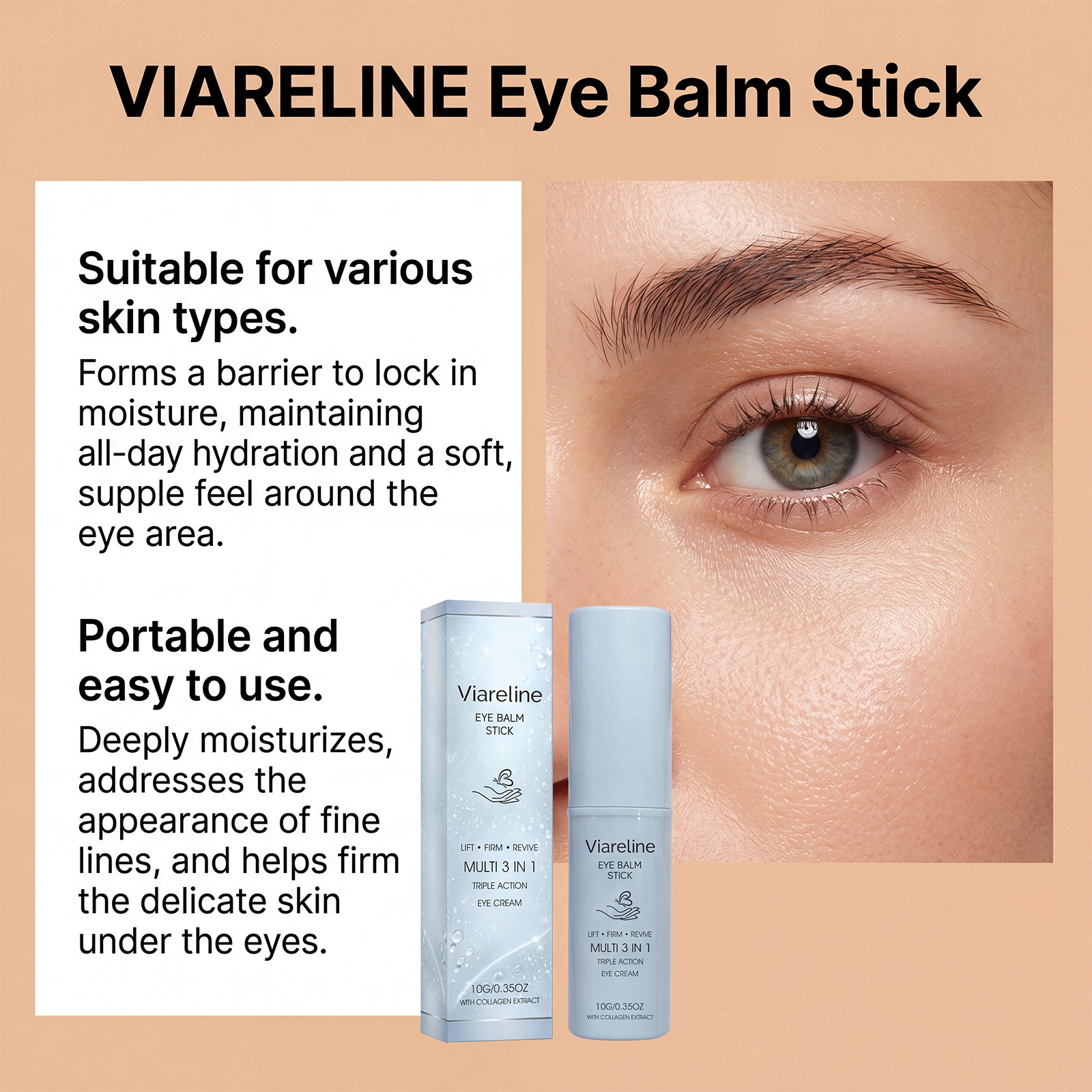 VIARELINE 胶原保湿眼霜棒 质地轻盈滋润眼周肌肤舒适按摩眼霜棒