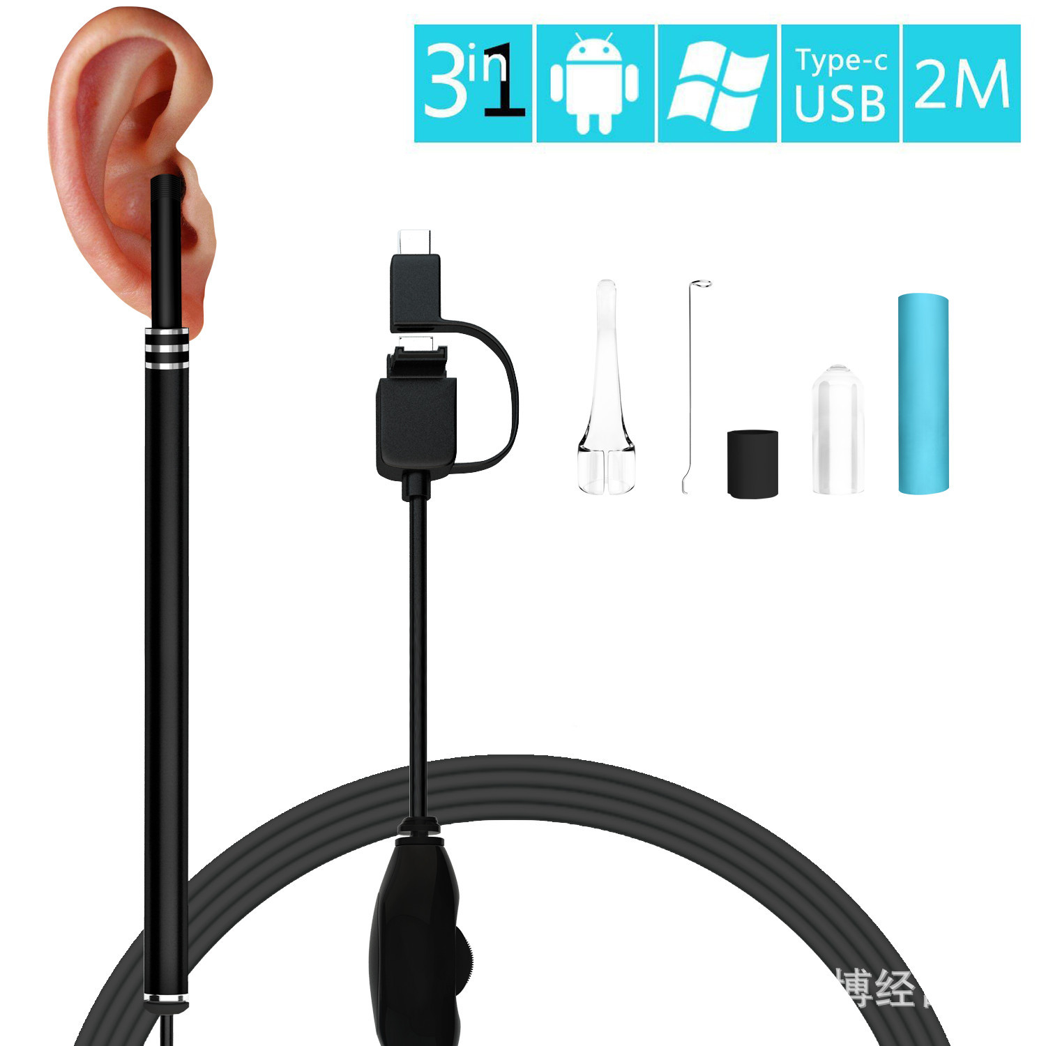 三合一5.5mm耳鼻喉内窥镜 防水高清 安卓可视耳勺