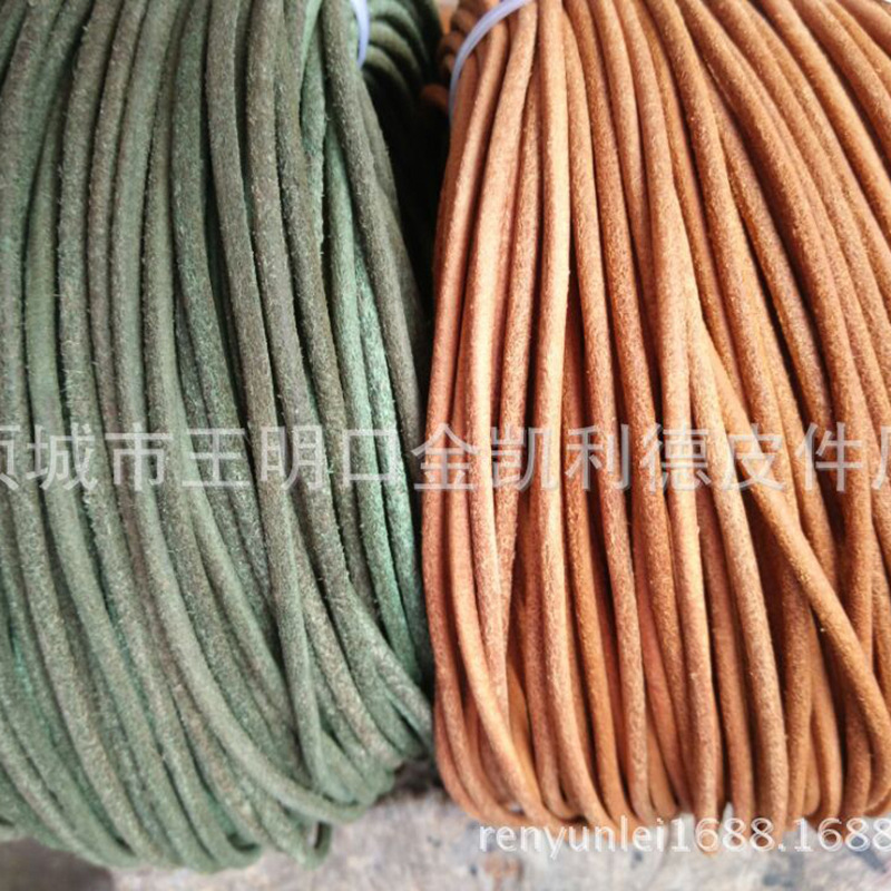 3.0mm毛面染色牛皮绳 手工编织DIY染色皮绳 头层牛皮毛面鞋带圆绳