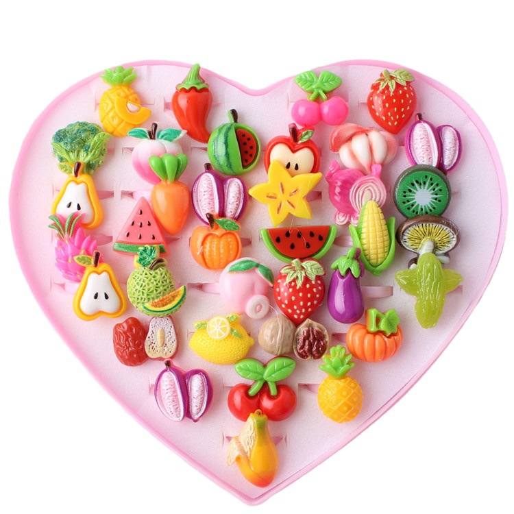 跨境儿童饰品新款韩版可爱女童水果卡通人物混款戒指义乌厂家直销