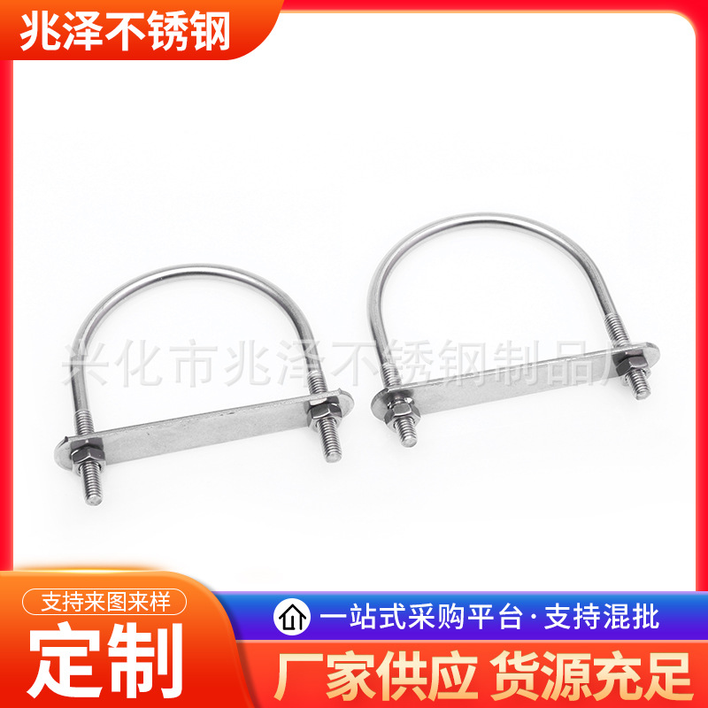 304不锈钢U型螺栓方卡U形螺丝大棚固定管卡抱箍方U型螺栓厂家螺杆