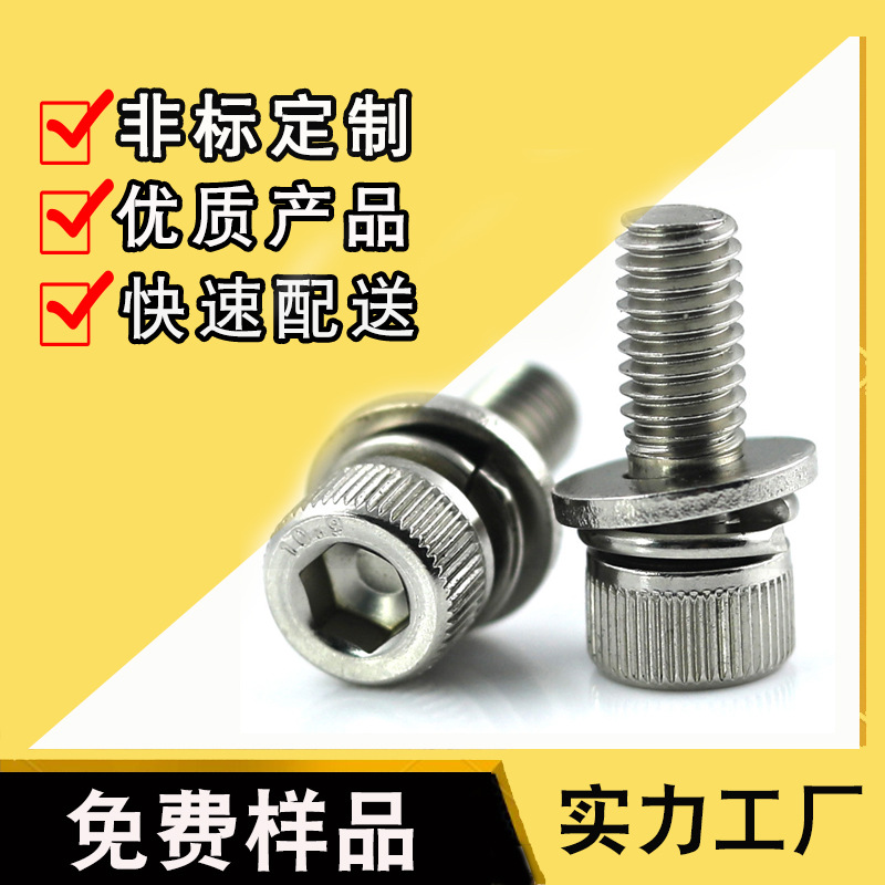 厂家免费样品圆柱头内六角组合螺丝平垫弹垫螺钉杯头滚花机牙螺丝