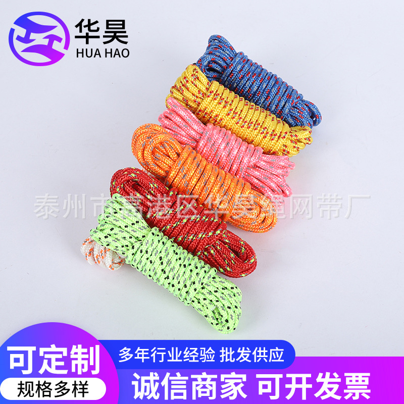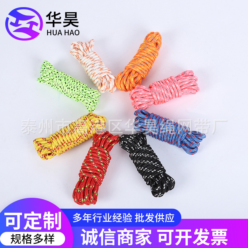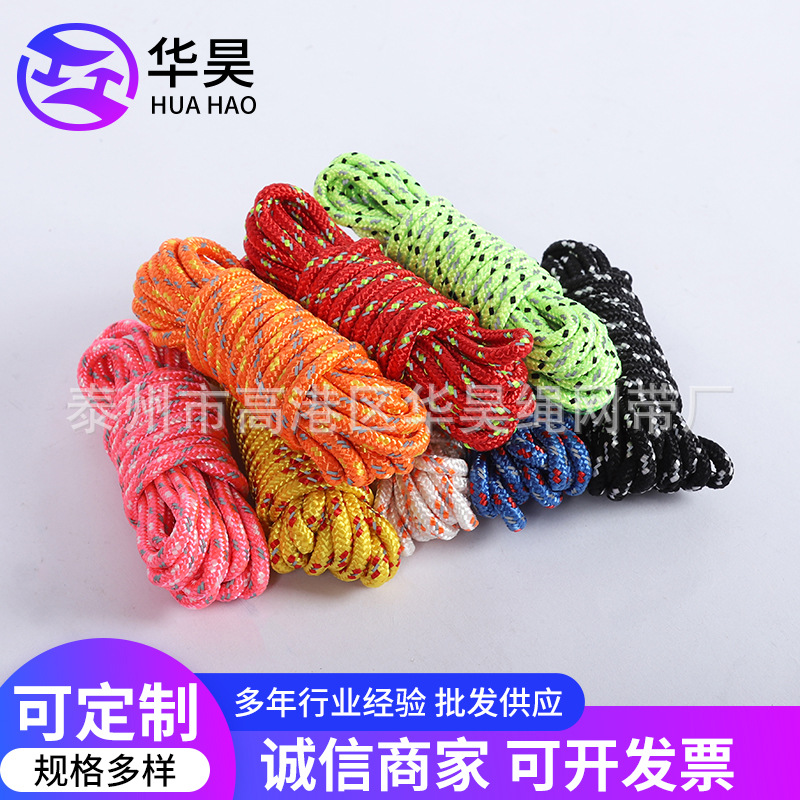 厂家批发5mm反光风绳荧光野营编织绳户外探险固定绳天幕帐篷配件