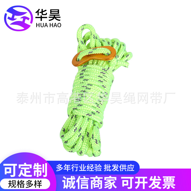 高亮野营反光绳 华昊供应荧光天幕固定拉绳 户外帐篷风绳地钉绳