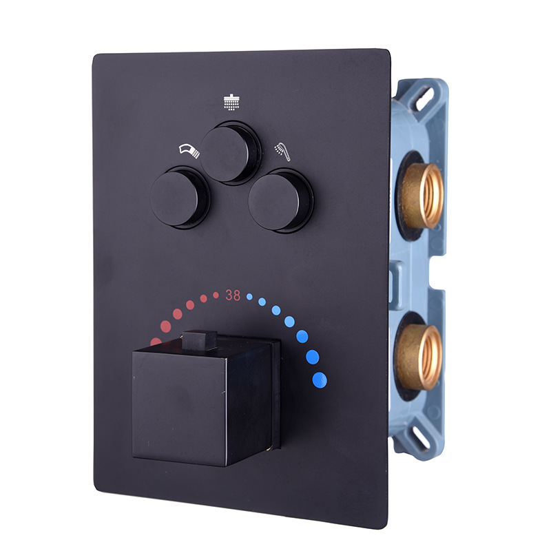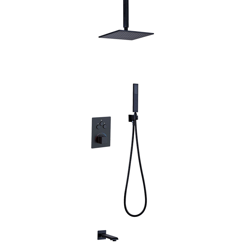 卫生间暗装按键三功能淋浴龙头酒店家用浴室黑色卫浴套装沐浴花洒