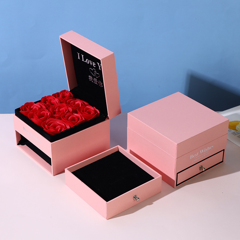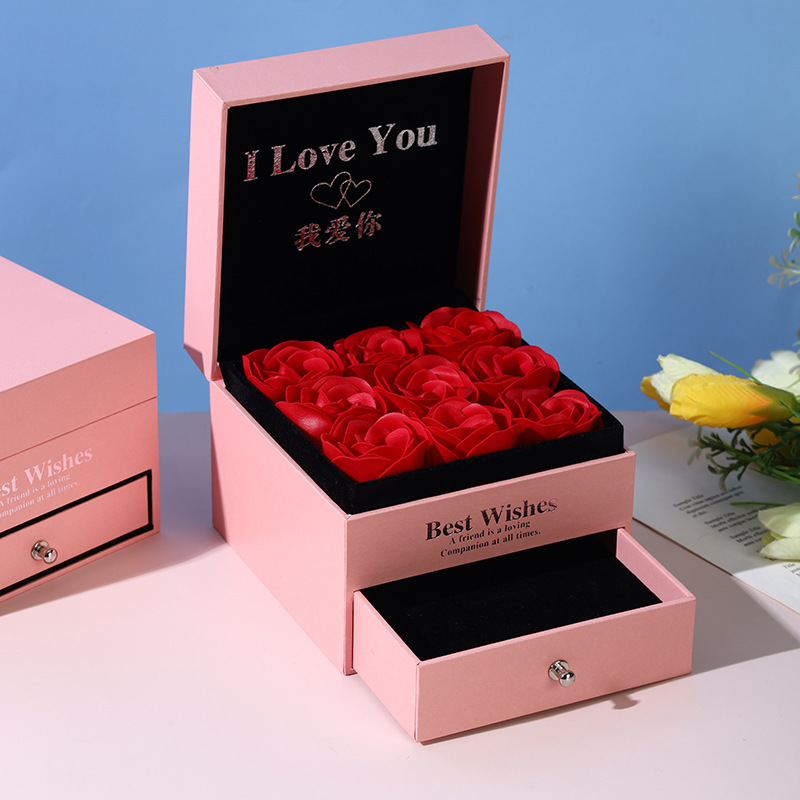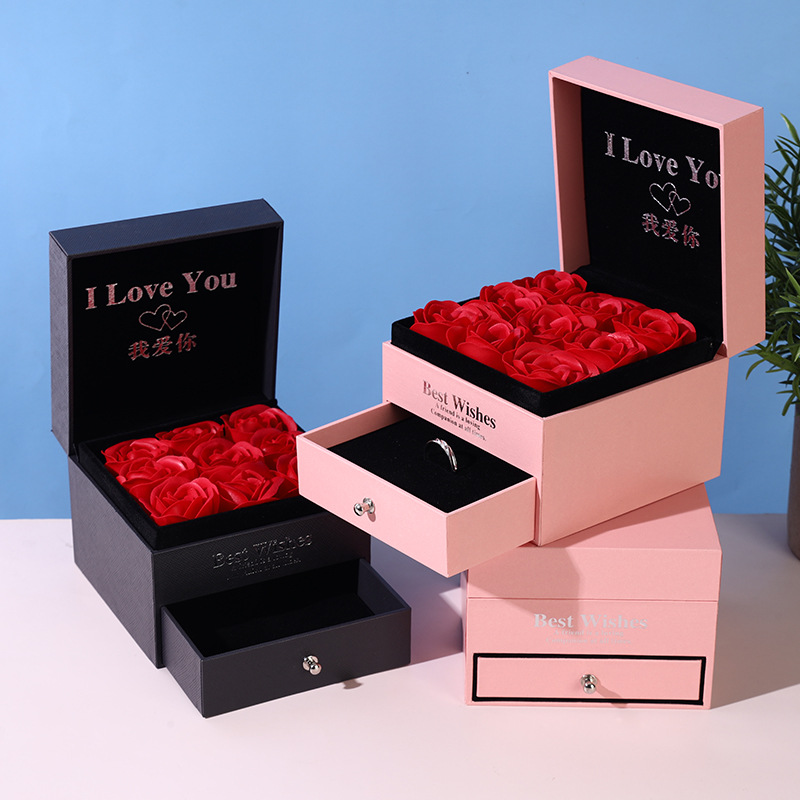 厂家现货情人节永生花限定饰品盒玫瑰花项链抽屉式首饰生日礼品盒
