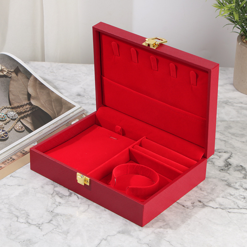厂家现货三金婚庆嫁妆套装盒耳环吊坠手镯项链珠宝首饰盒收纳盒
