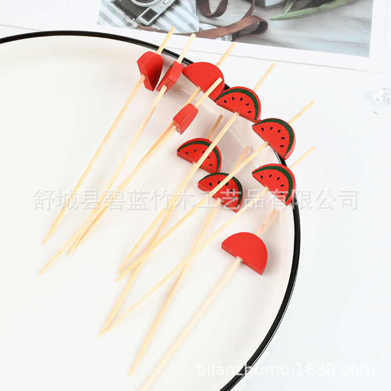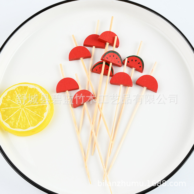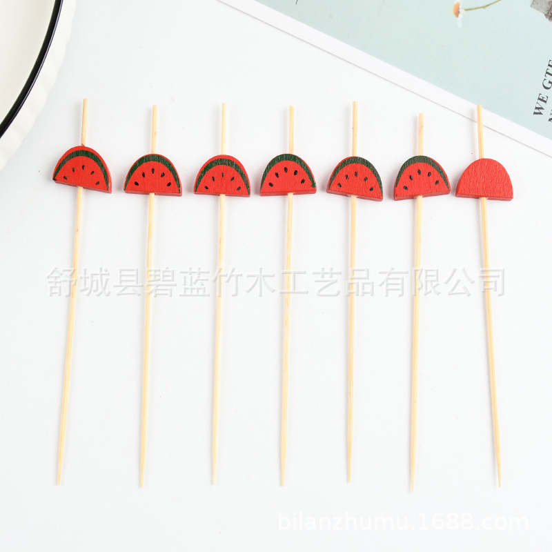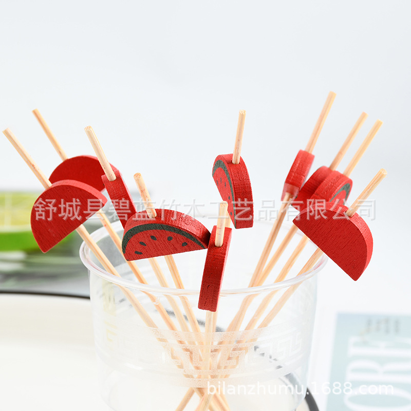 迷你西瓜水果签 冰糖葫芦串签竹签鸡尾酒装饰七彩珠子印花水果签