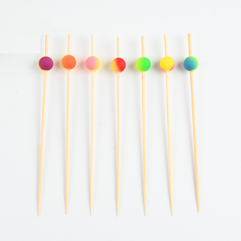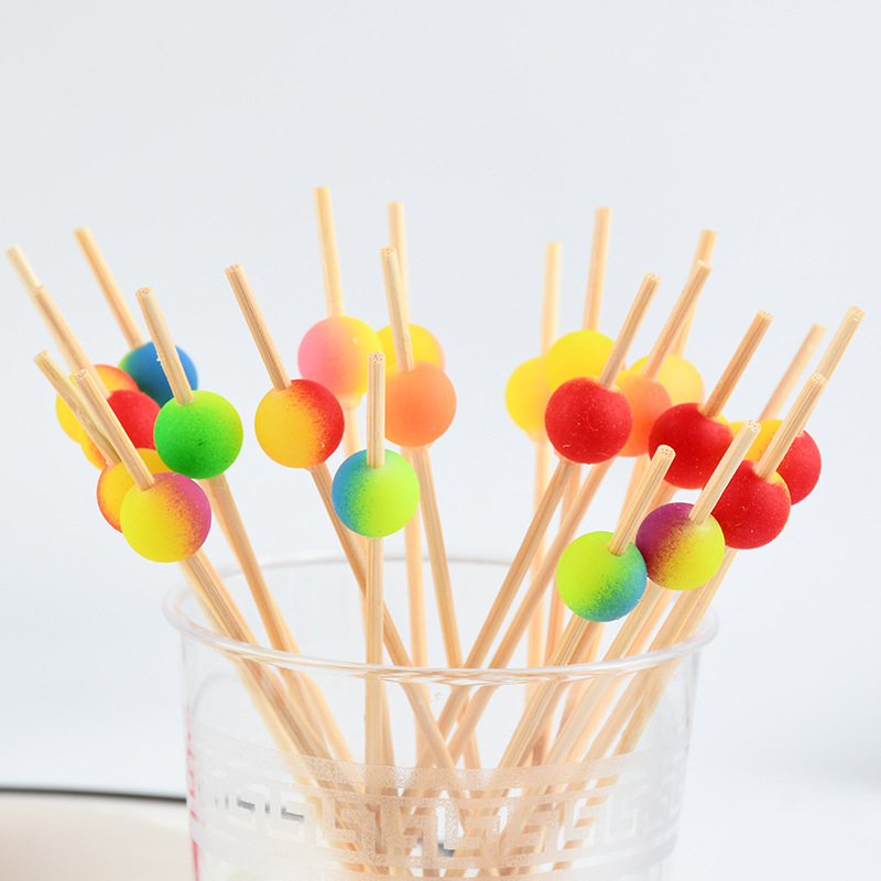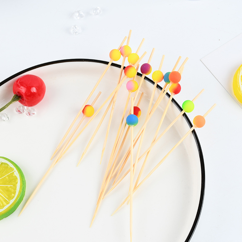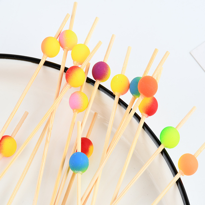 一次性七彩珠子水果签果插艺术花签点心寿司竹签果叉调酒装饰摆盘