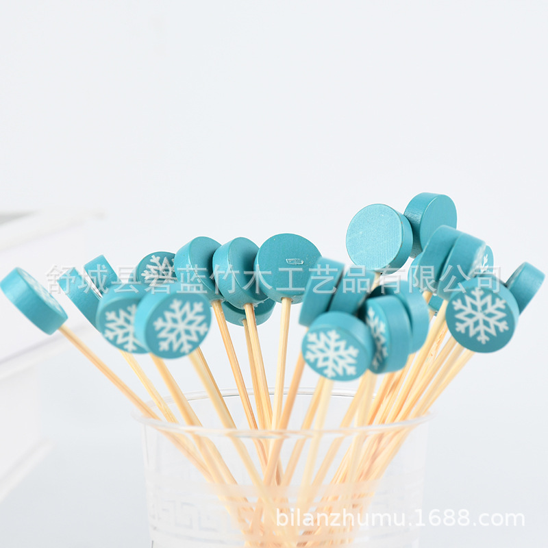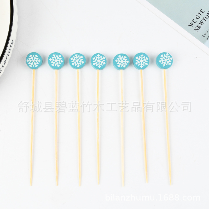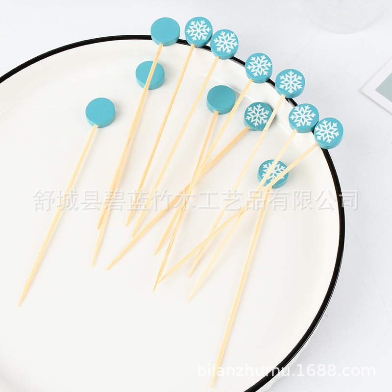 一次性竹水果签鸡尾酒家用竹签雪花创意竹签蓝色蛋糕插子厂家批发