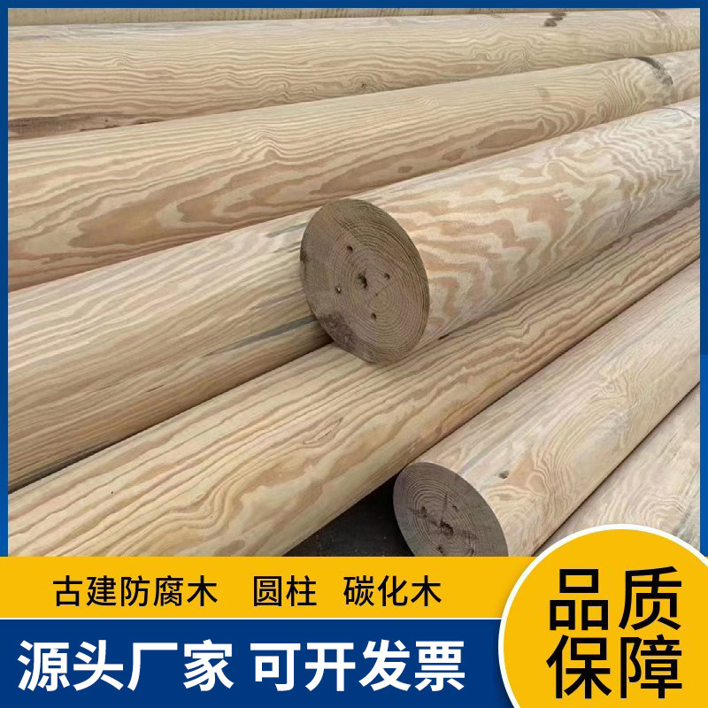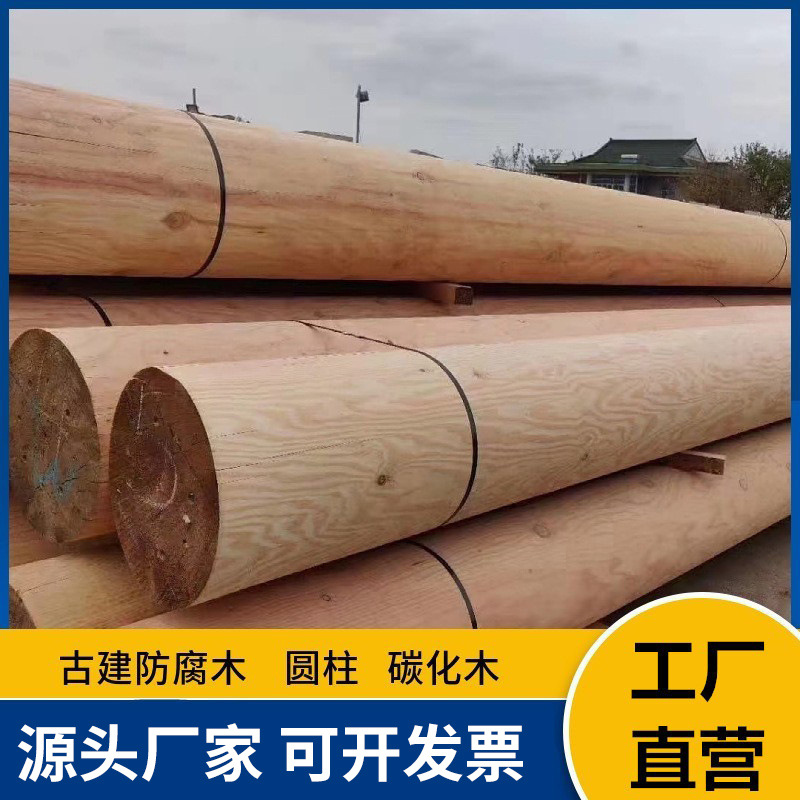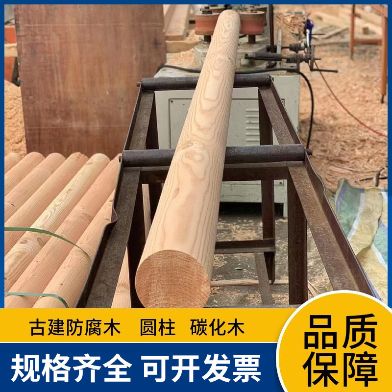古建圆柱花旗松红松铁杉车圆寺庙立柱木椽子公园凉亭防腐刨光开槽