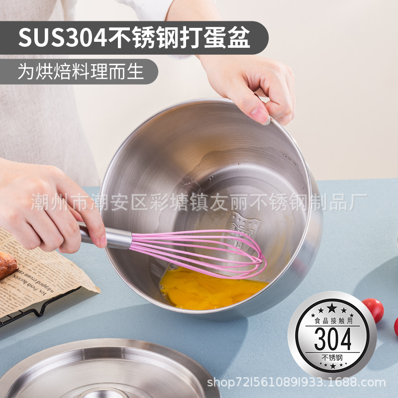 201/304不锈钢打蛋盆带盖家用和面盆油盆烘焙加深防溅打发奶油盆