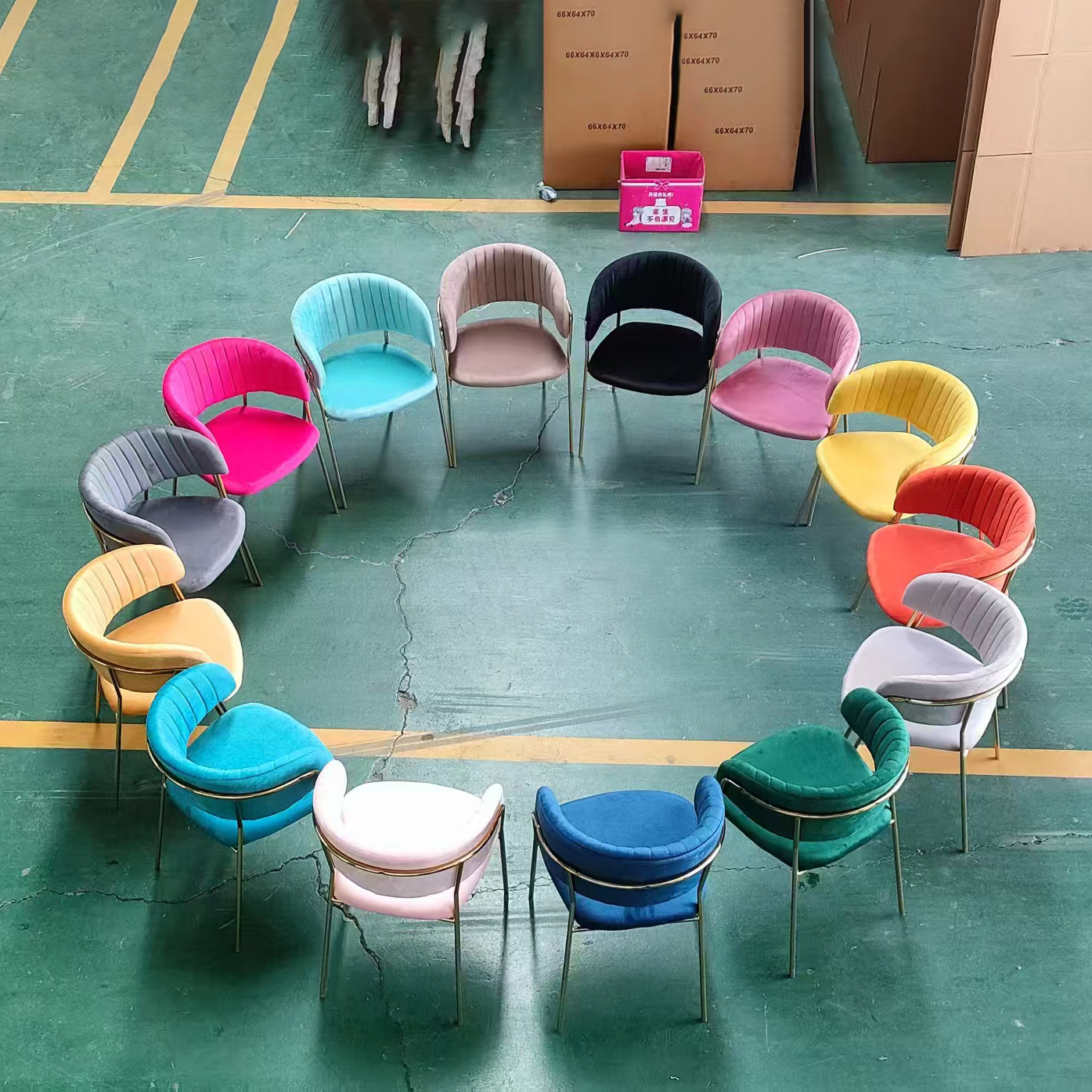 厂家批发北欧简约铁艺休闲椅咖啡店美甲店带扶手靠背梳妆椅梳妆凳