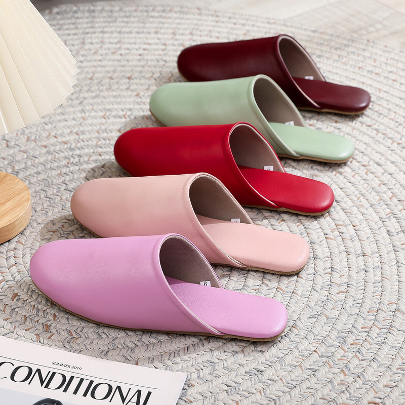高级透气四季春秋家居头层羊皮拖鞋家用室内耐磨情侣皮拖鞋