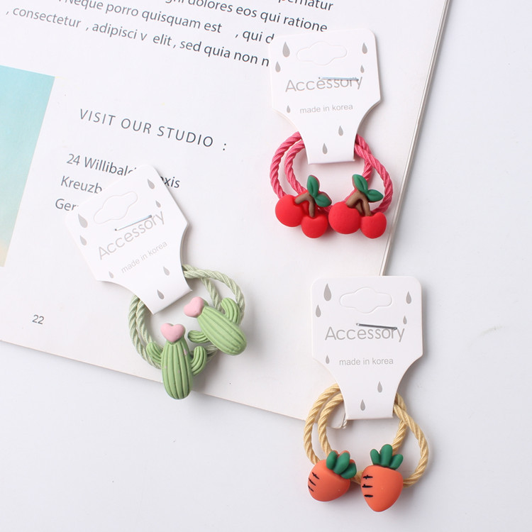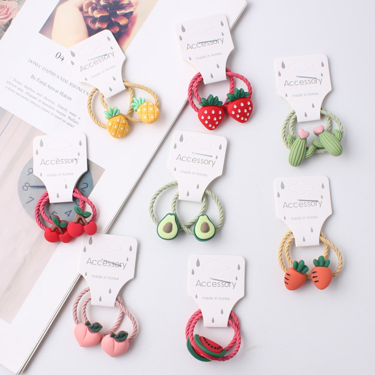 儿童新款可爱女童水果发圈 宝宝不伤发扎头弹力皮筋 对装订卡发绳