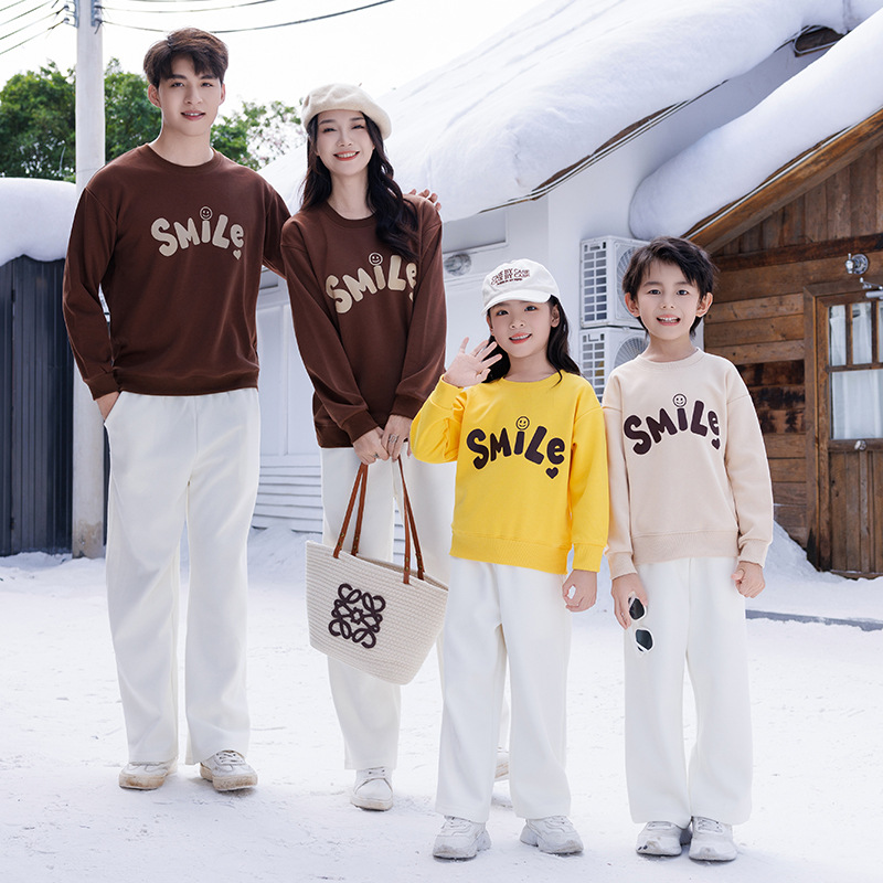 2025新款亲子装秋冬季加绒圆领卫衣一家三口四口母子母女装家庭装