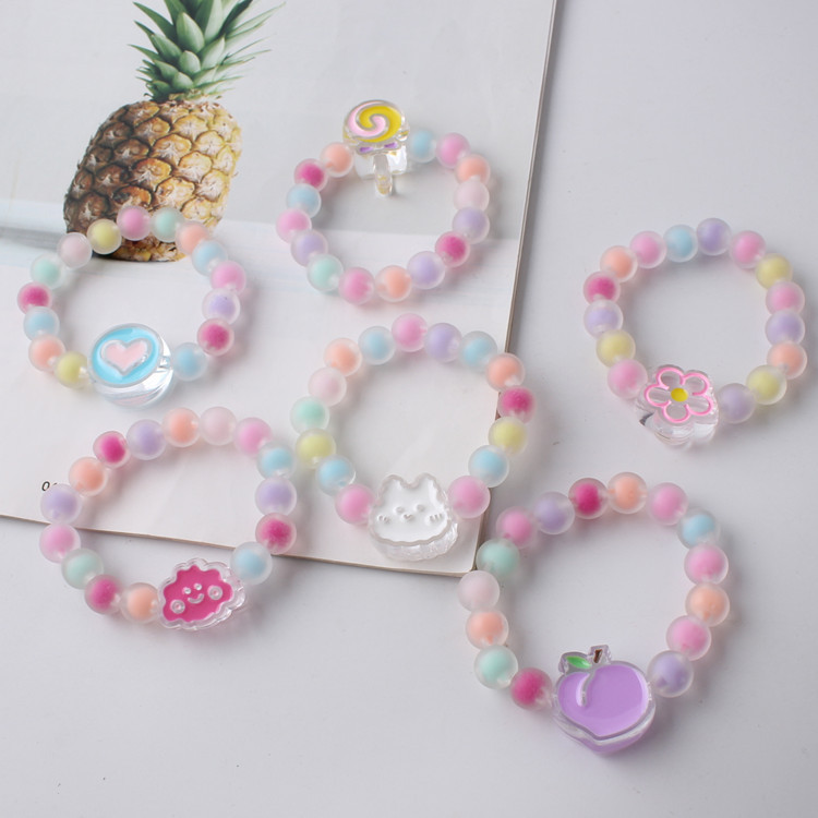 跨境热销彩色串珠儿童手链可爱小女孩礼物动物亚克力爱心糖果手环